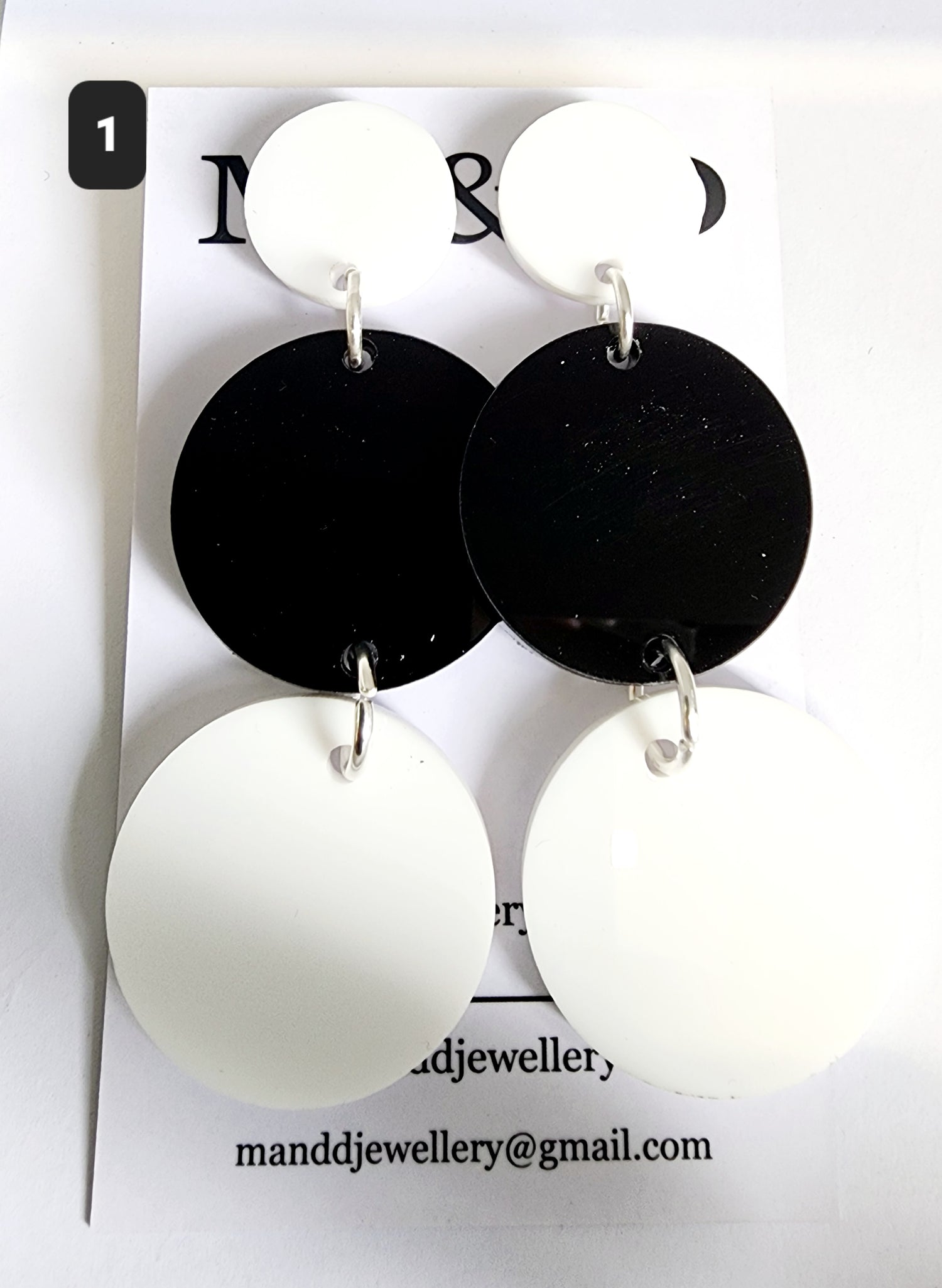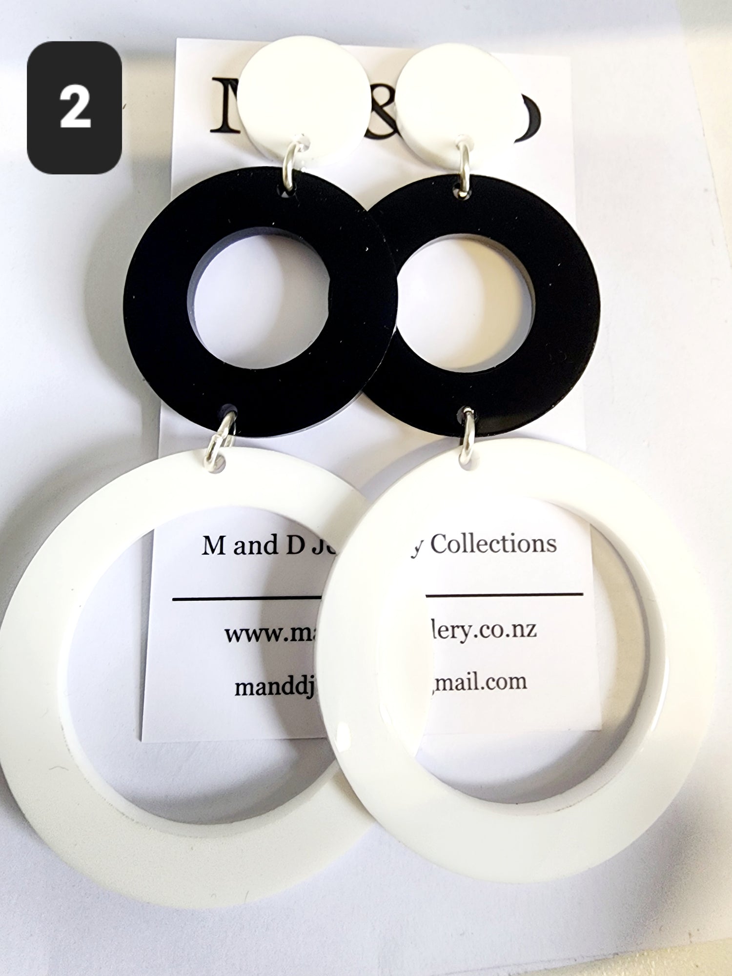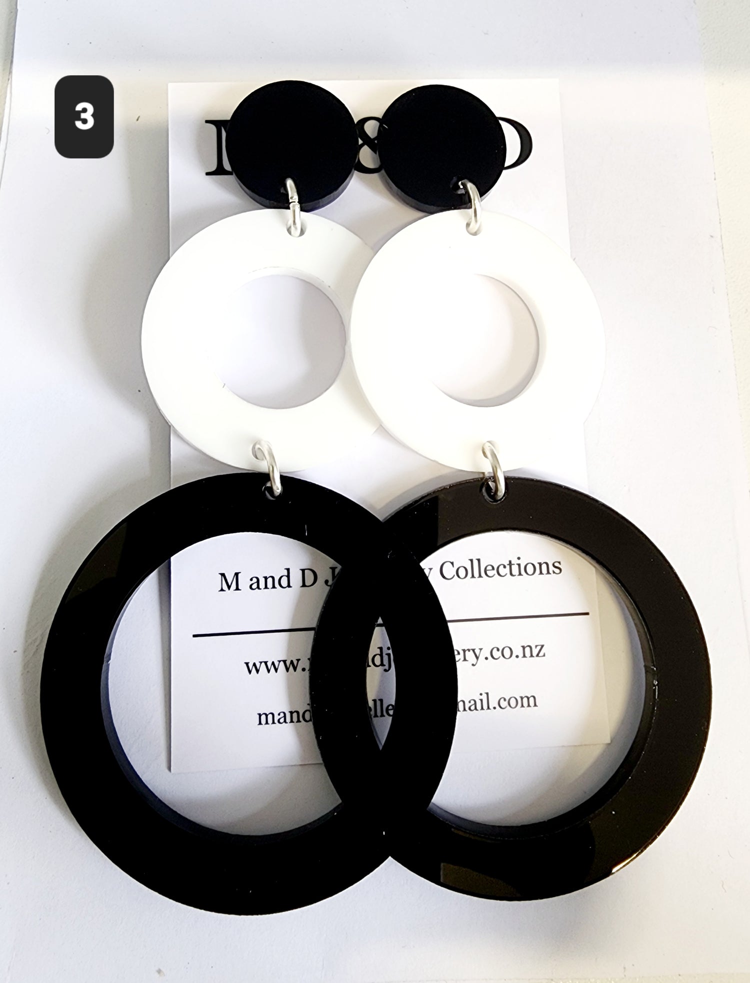 Beautiful Striking Black.White earrings. A classic and ever stylish combination.