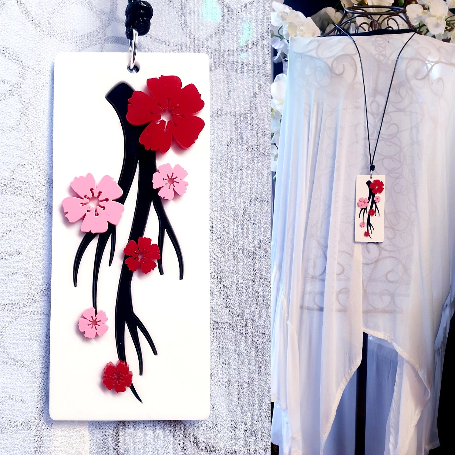 Gorgeous Cherry Blossom necklace with reverse cutout inserts and 3D cherry blossoms 🌸