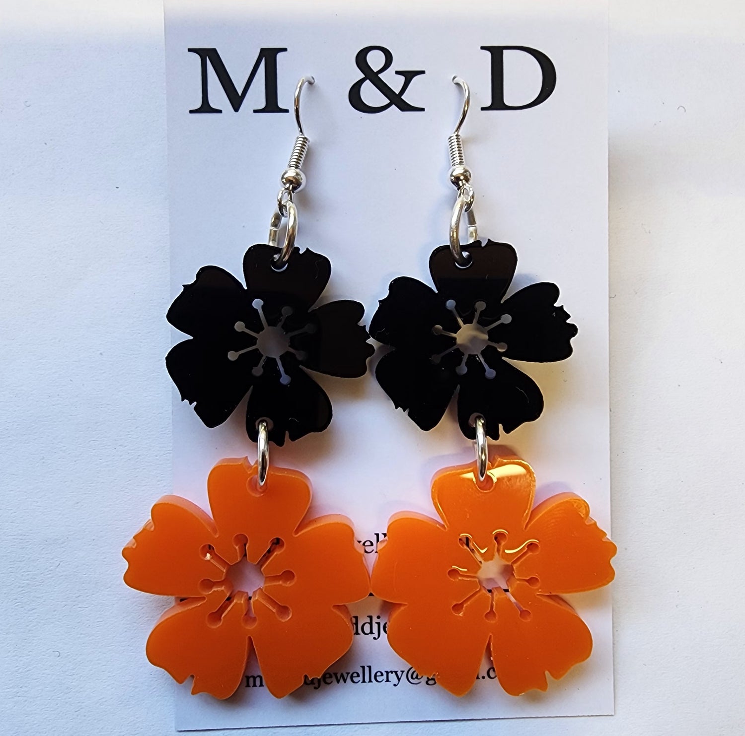 Two blossoms hung together on a hypoallergenic stainless steel hook