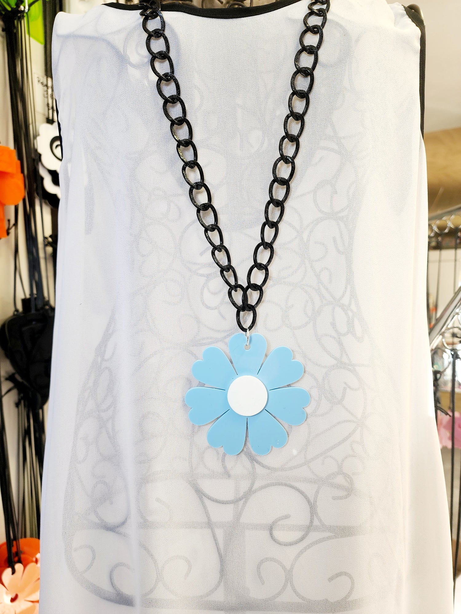 Daisy with Petal reverse! Two necklaces in one, pendant hung on Black lightweight chain.