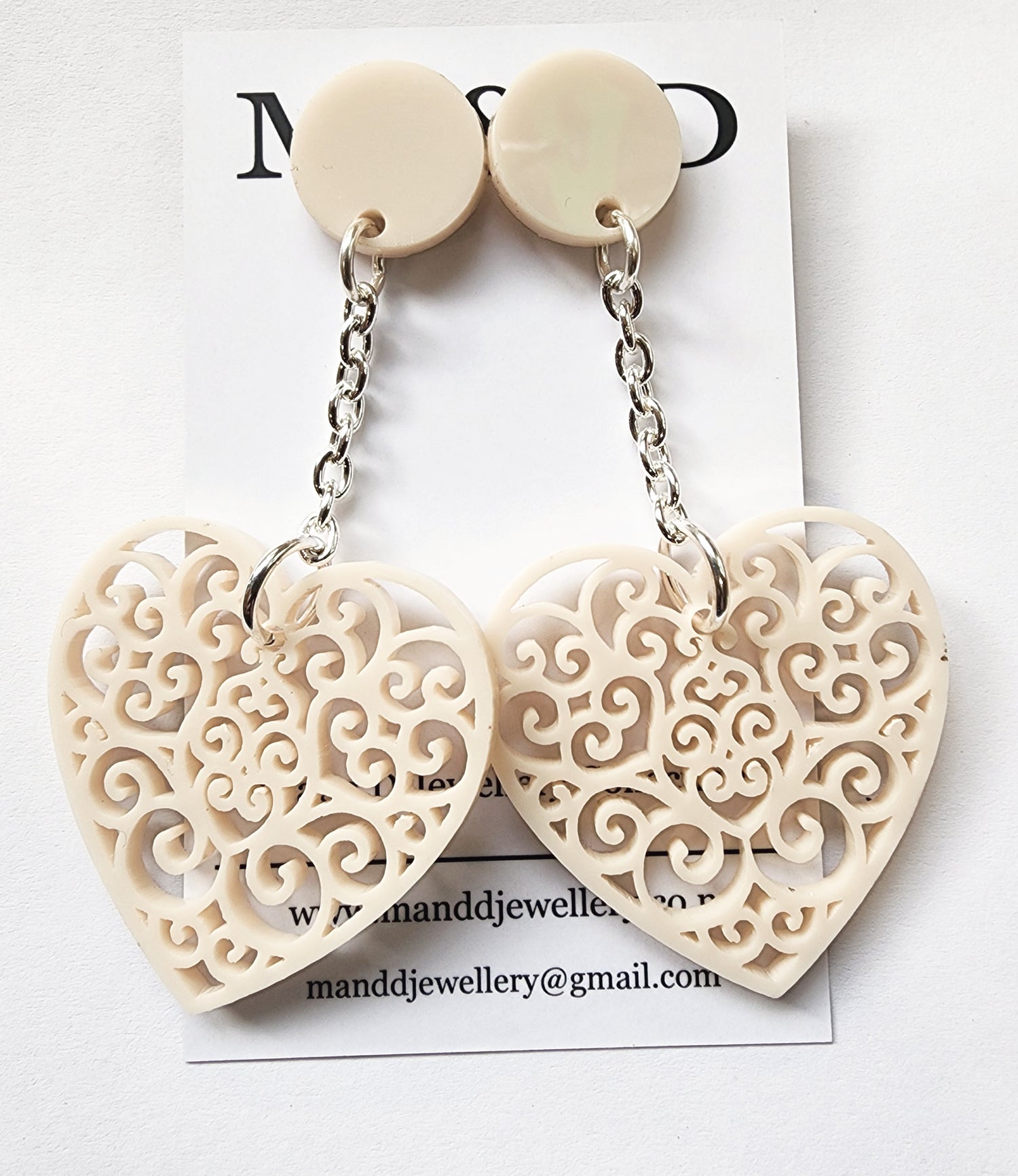 Chained Drop Filigree Heart Earrings Stud Dangles