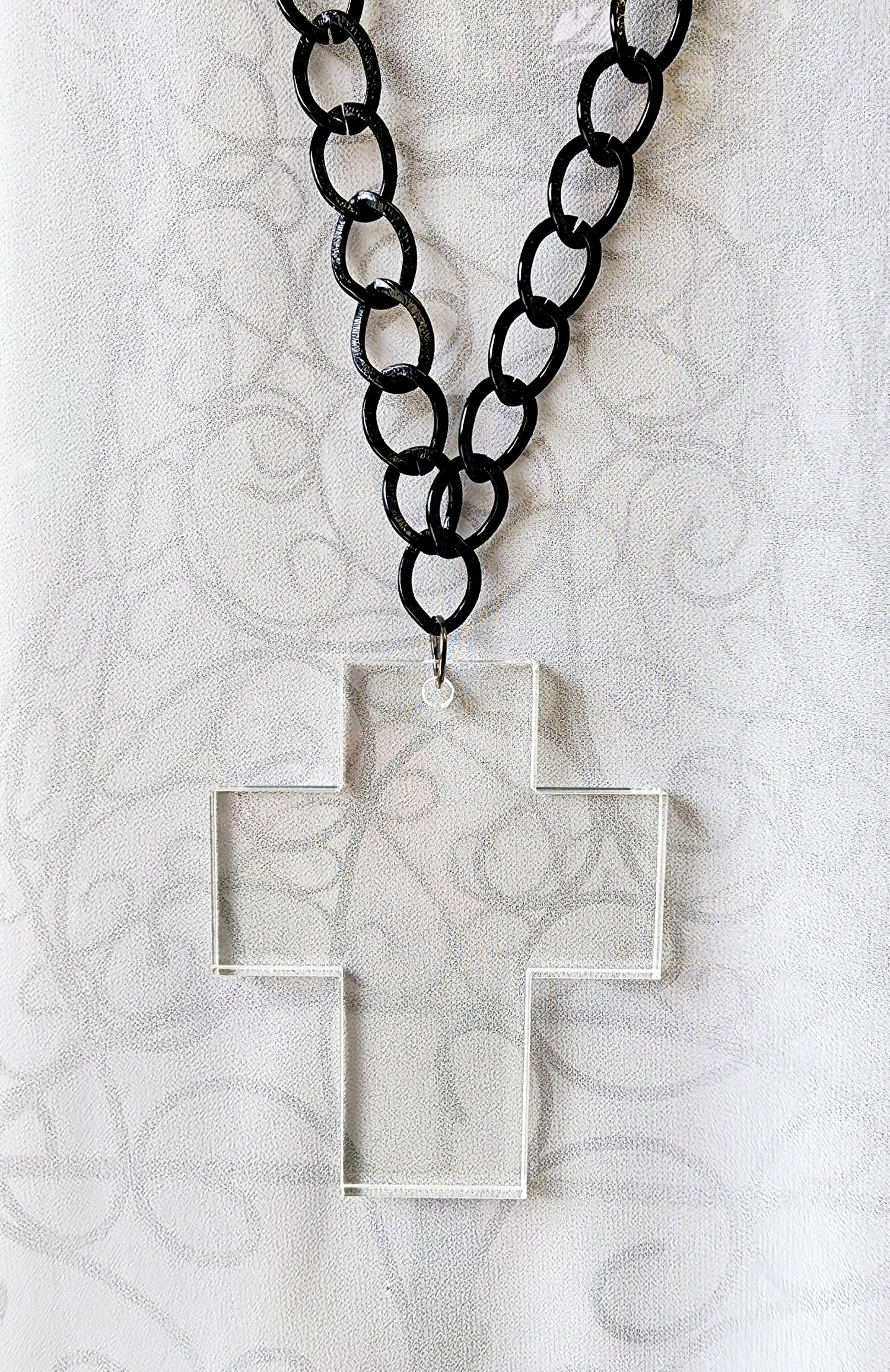 Fabulous Chunky Cross 6mm thickness hung on lightweight black chain.