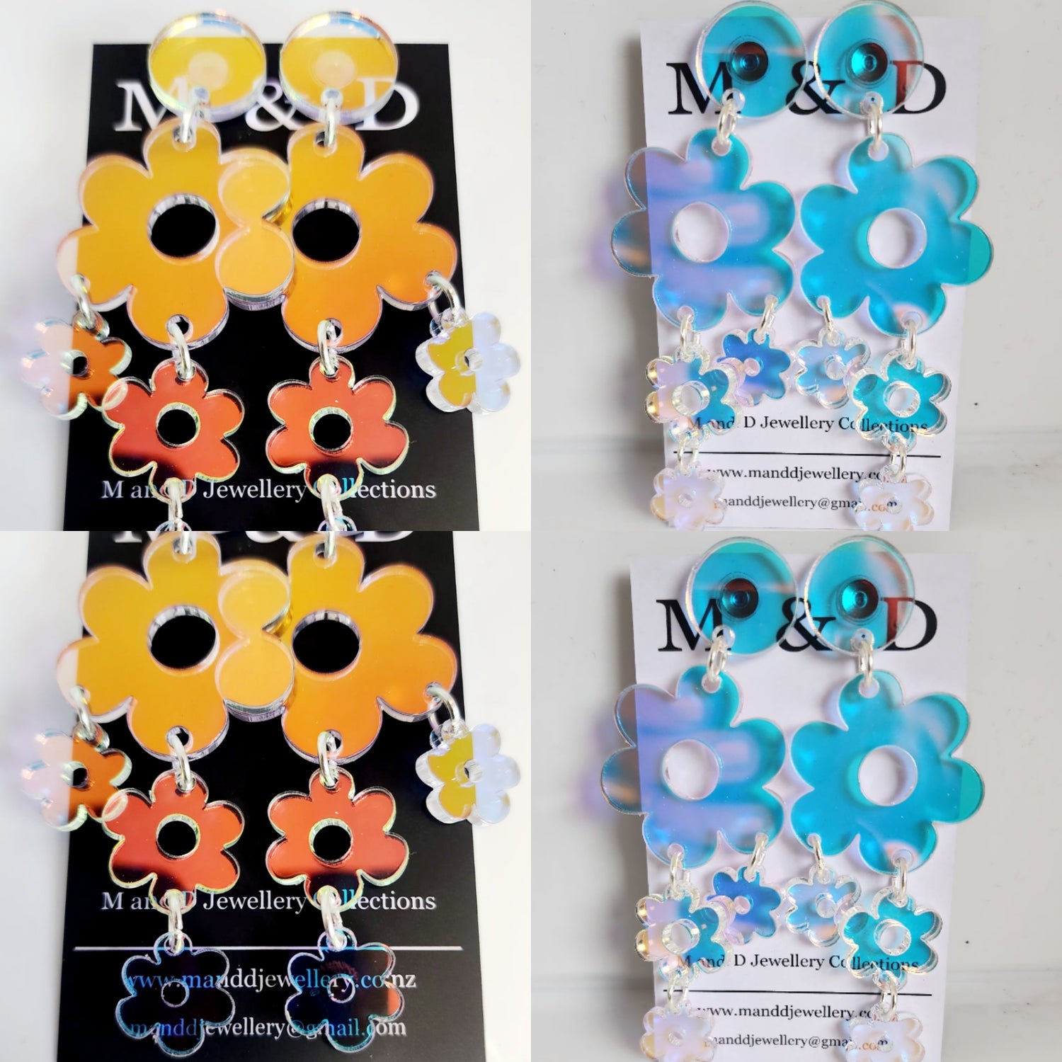 Beautiful Dangle Earrings coated with an iridescent sheen.