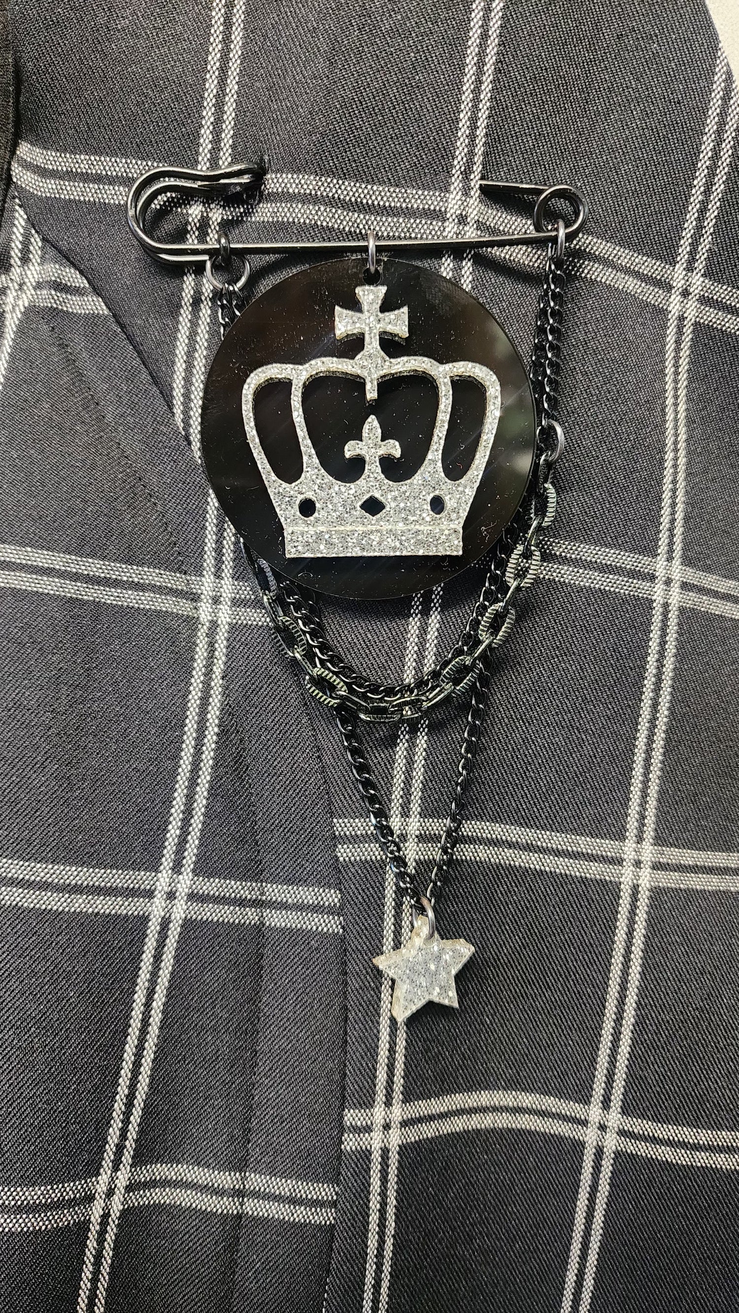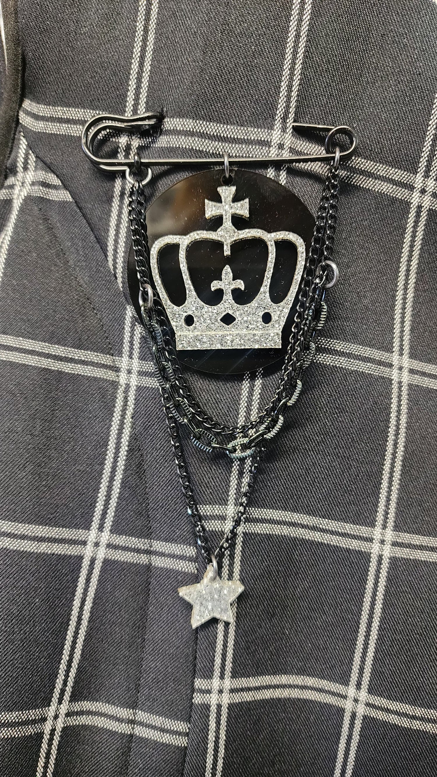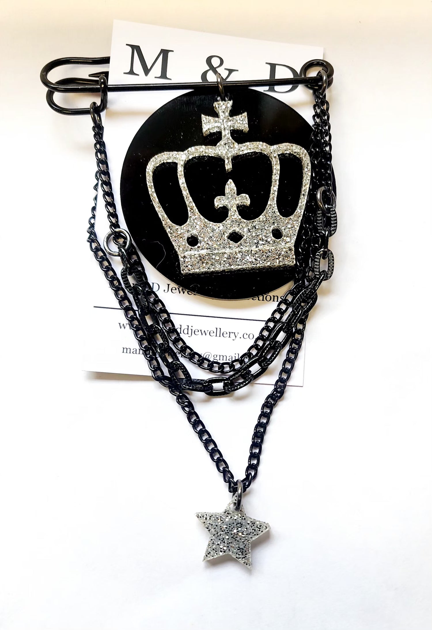 Cute Kilt Pin Brooch with Crown layer and chain detail.