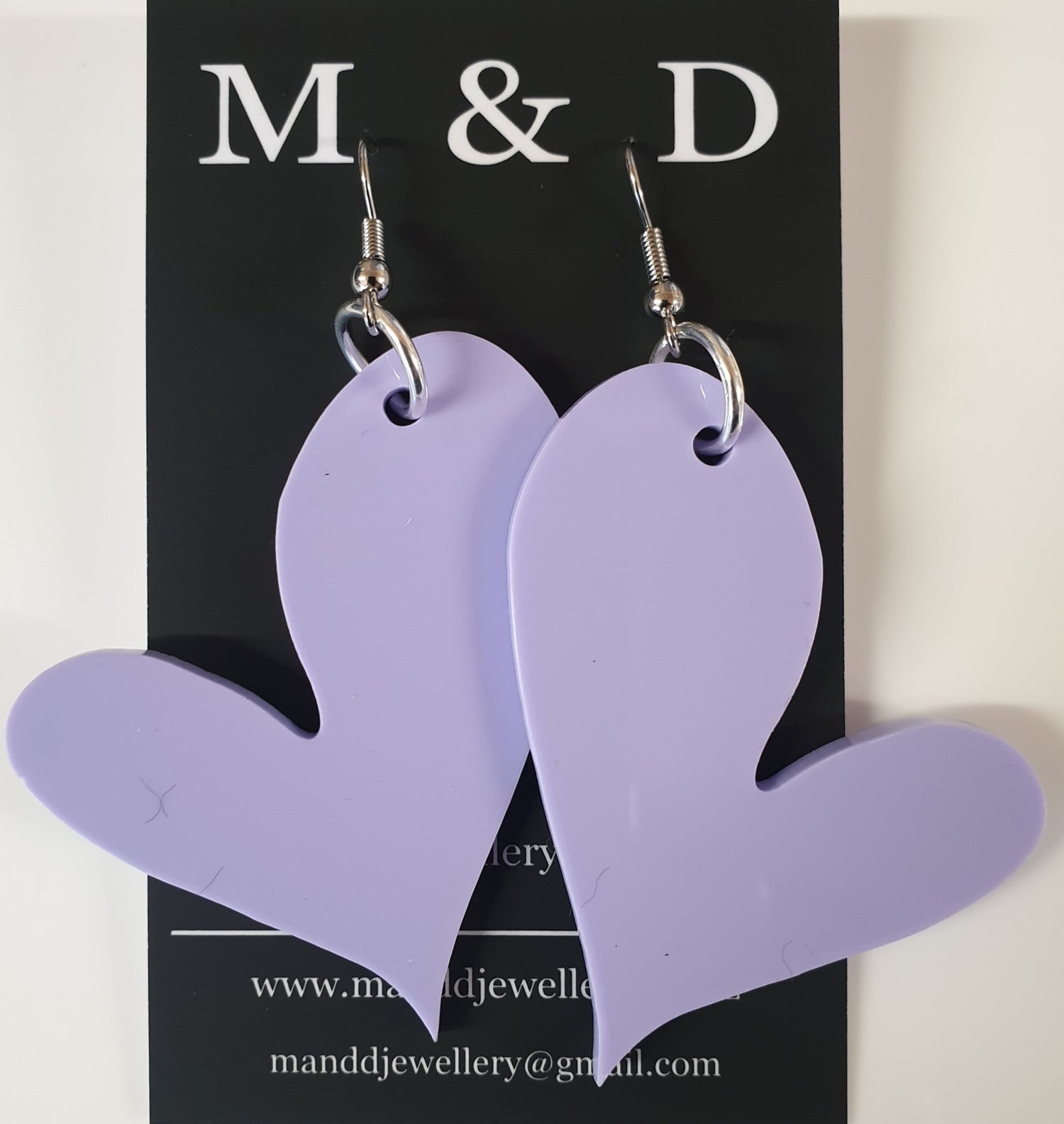 Super cute wonky heart earrings, cut in lightweight acrylic, and finished with hypoallergenic stainless steel hardware.