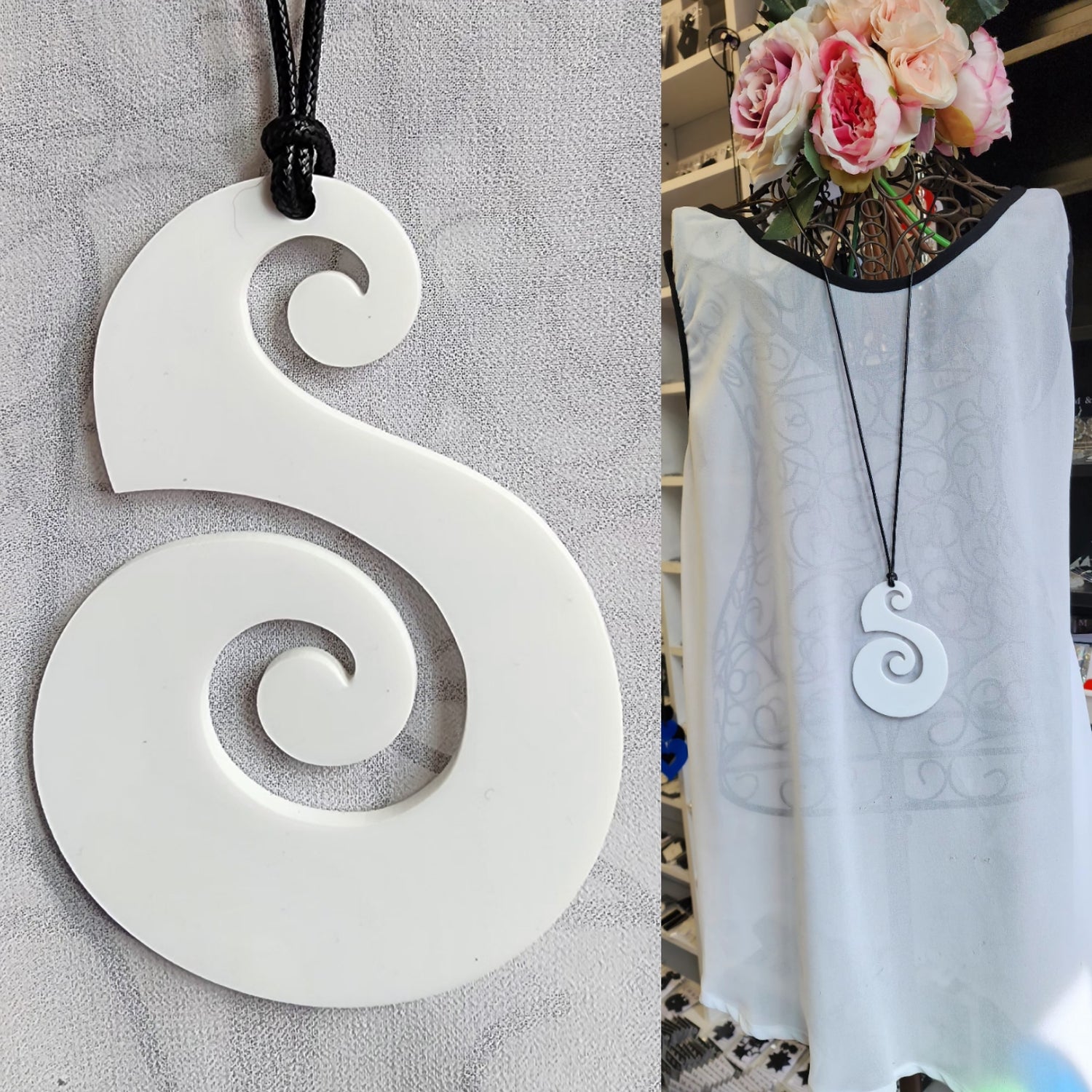 Cut from 3mm Acrylic and hung on soft pliable waxed cord with an adjustment bead.