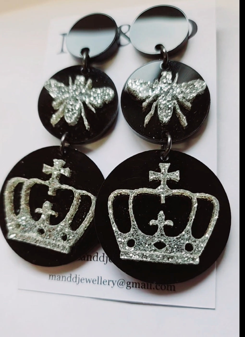 Queen Bee on Disc Trail Stud Dangles Earrings
