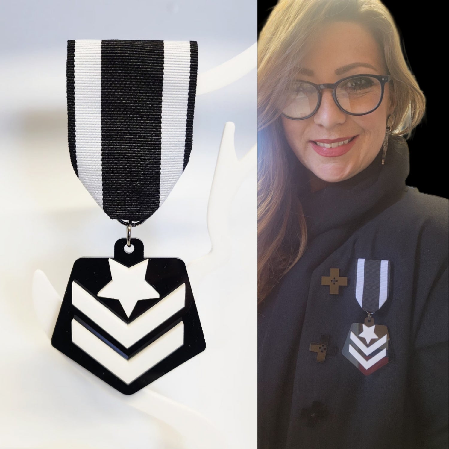 Stylish Military Inspired Ribbon Brooch with our gorgeous pendants.