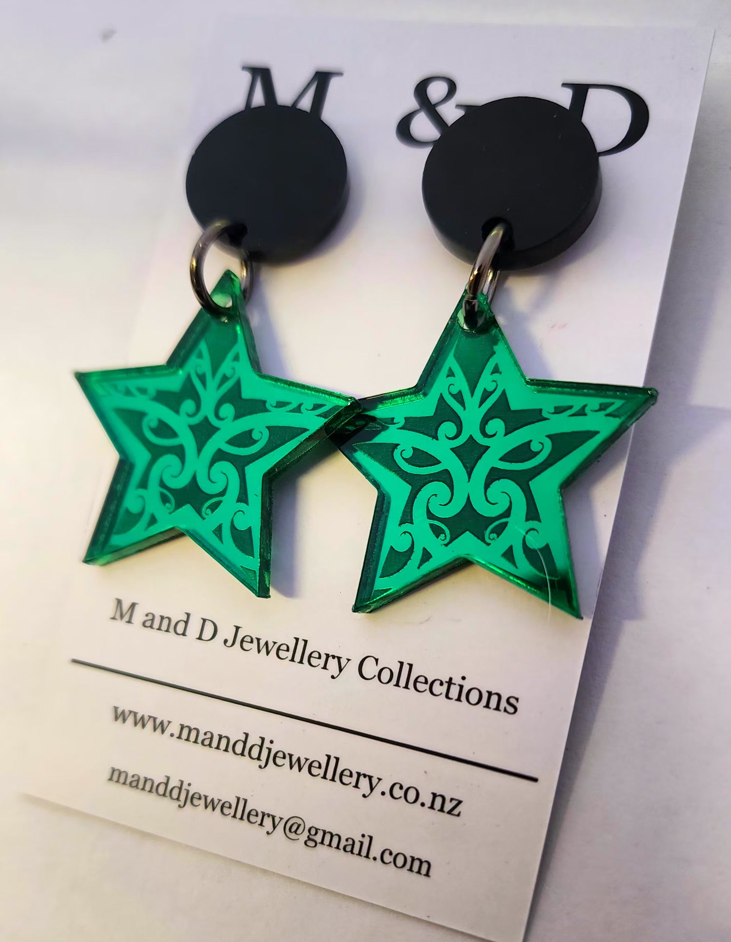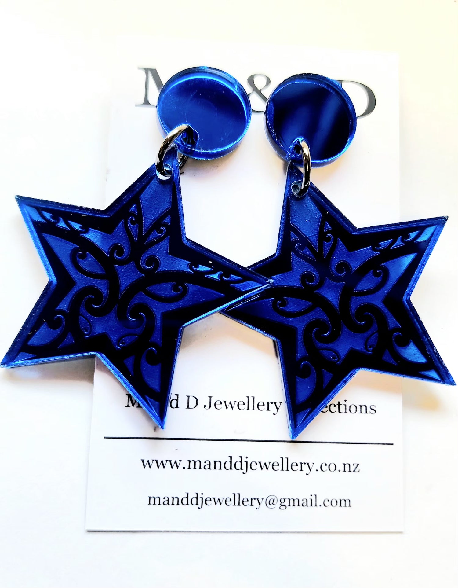 Star Earrings engraved with a beautiful Maori Design, perfect for Matariki! ✨️✨️