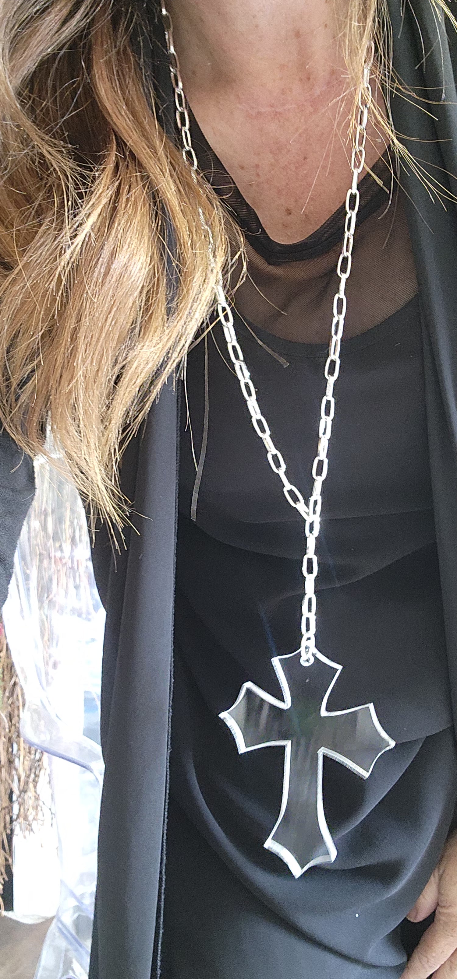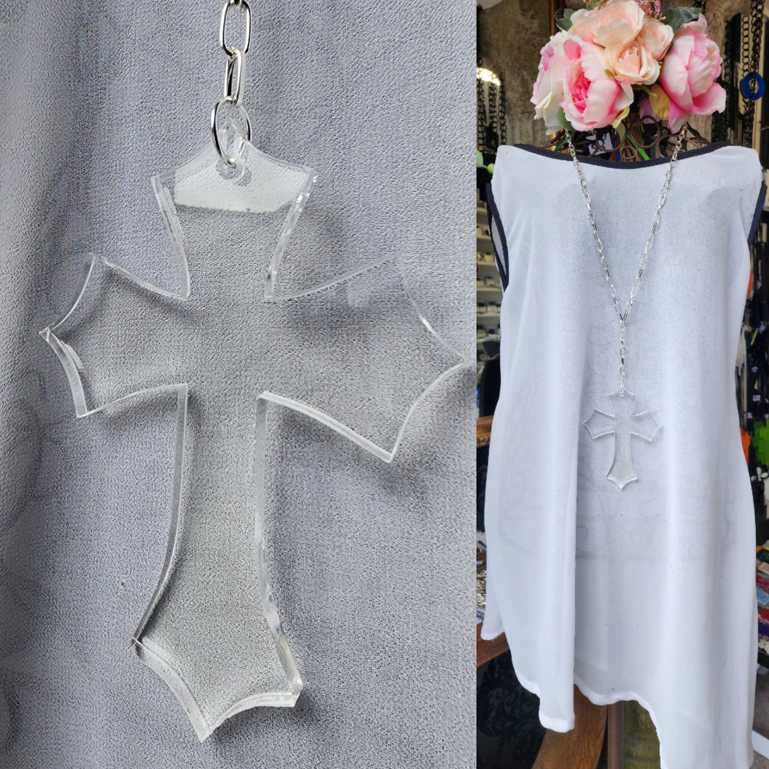 Diamond Point Cross 6mm Clear Chunky Statement necklace