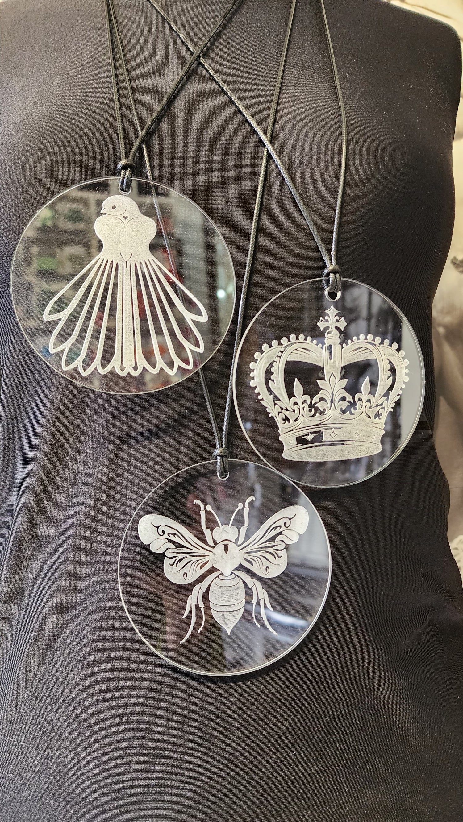 Engraved Design on Lightweight Clear Acrylic Disc.