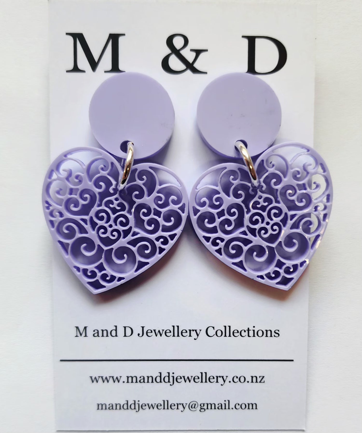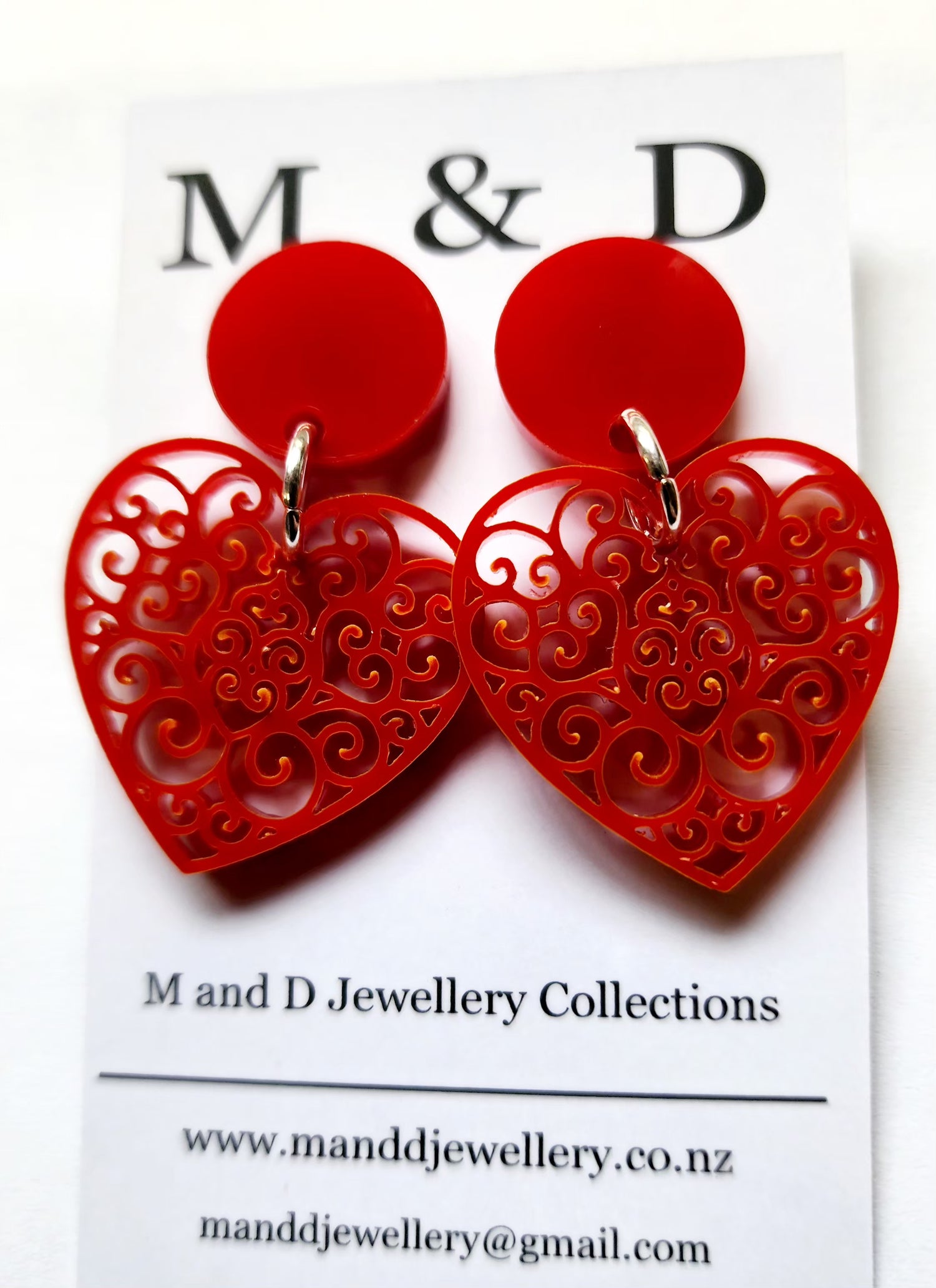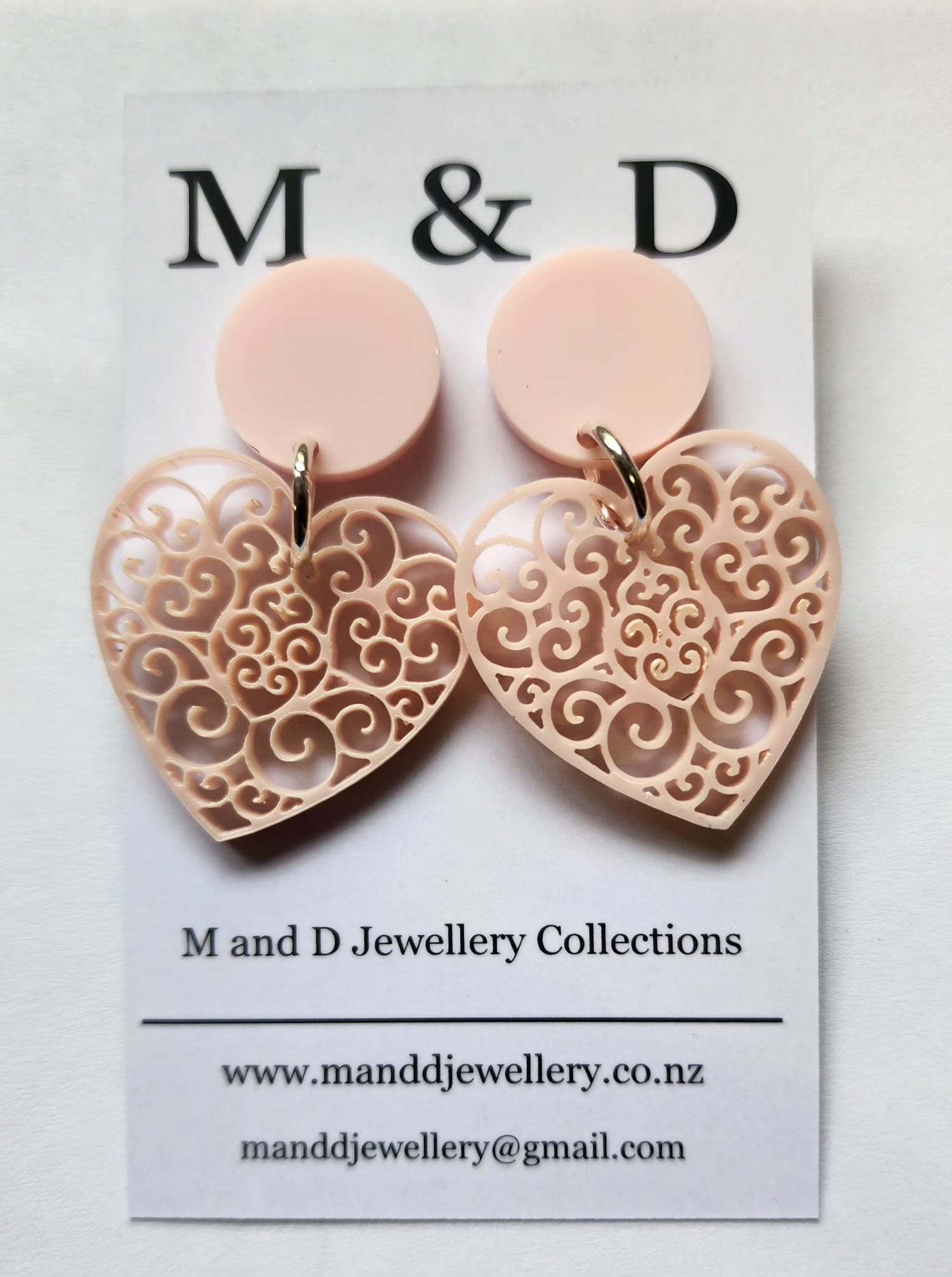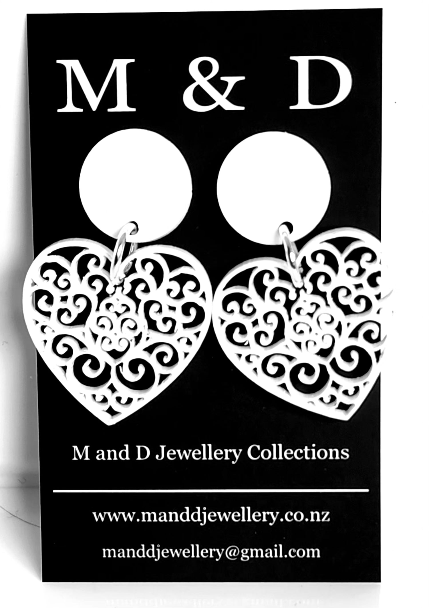 Beautiful Feminine Filigree Heart Earrings with a Stud Top, finished with hypoallergenic stainless steel hardware.