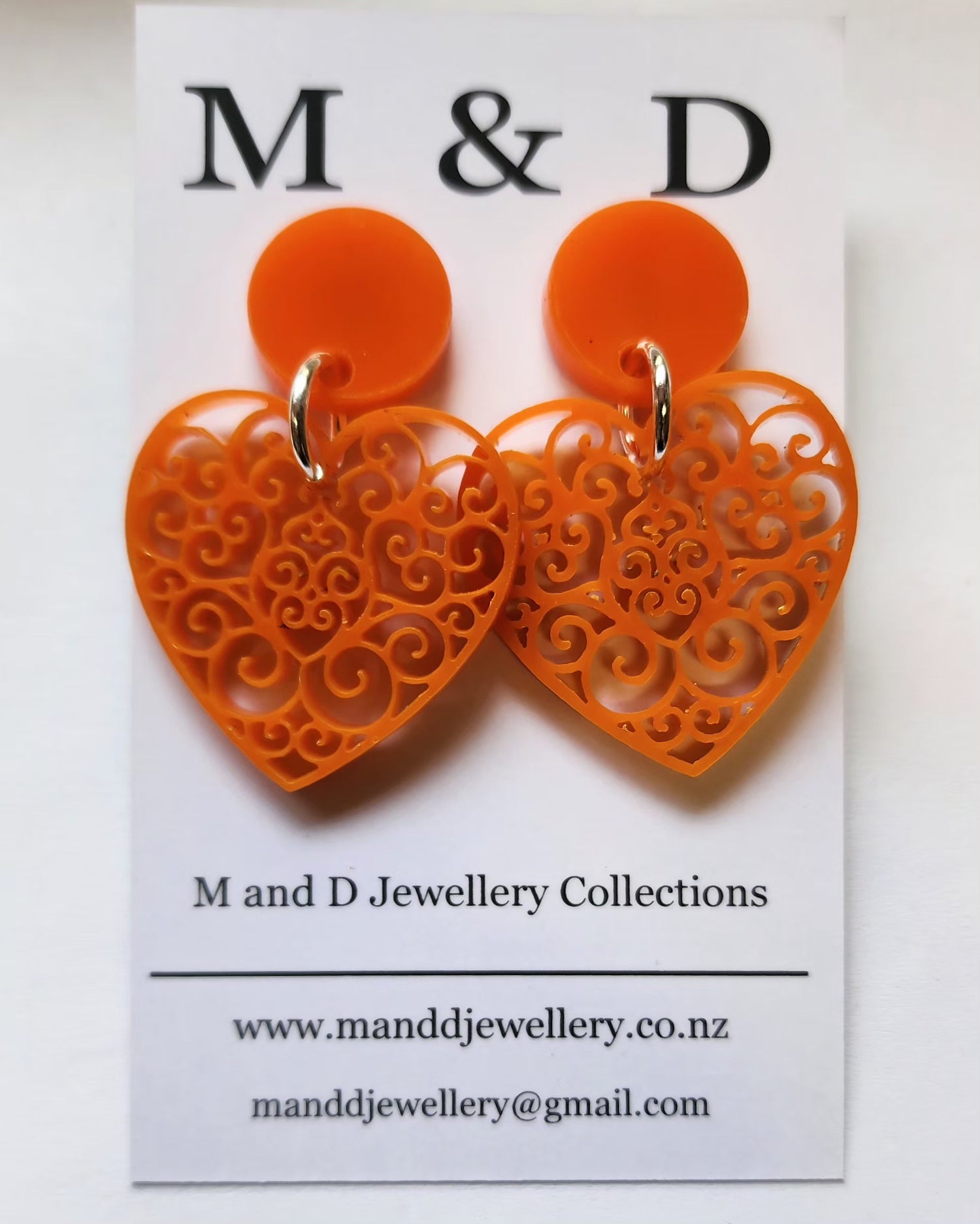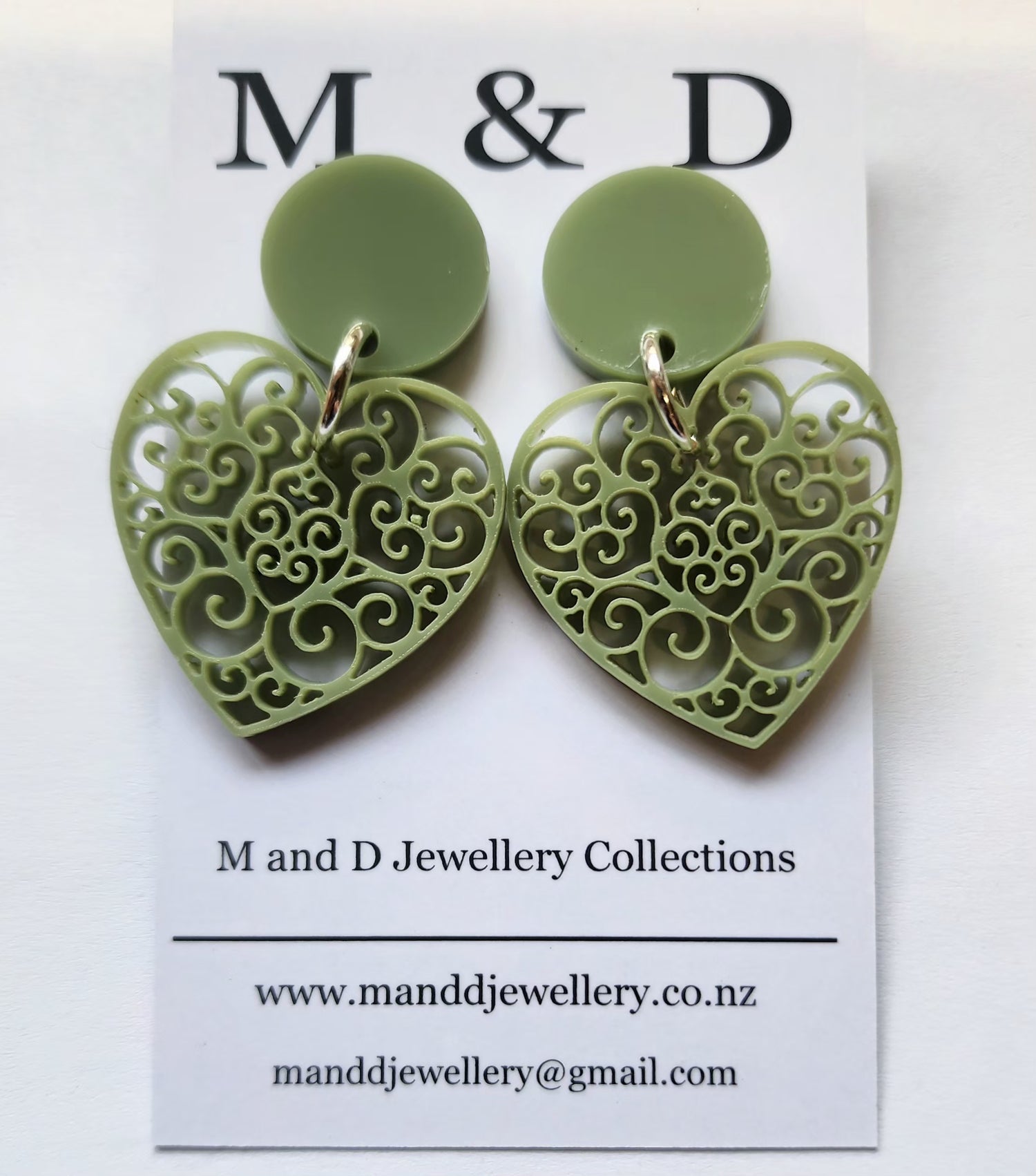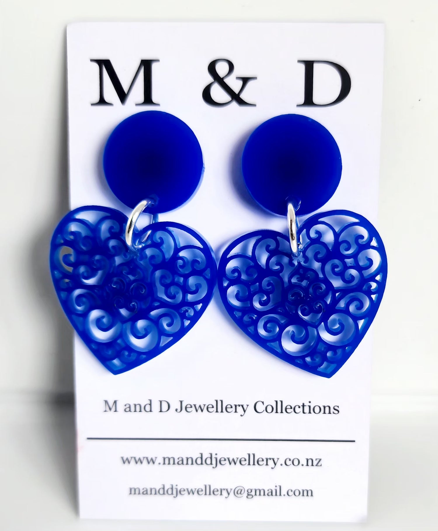Beautiful Feminine Filigree Heart Earrings with a Stud Top, finished with hypoallergenic stainless steel hardware.