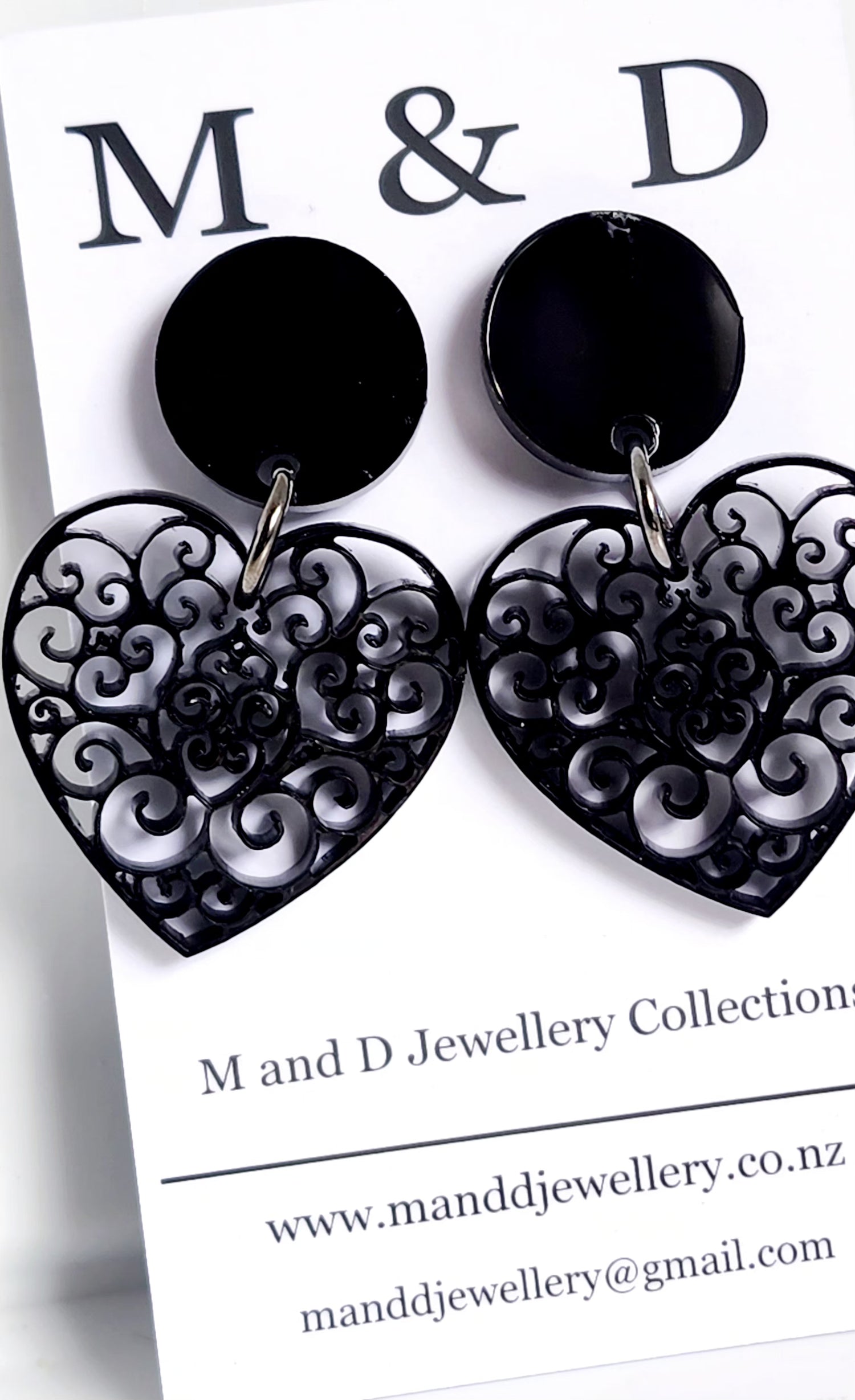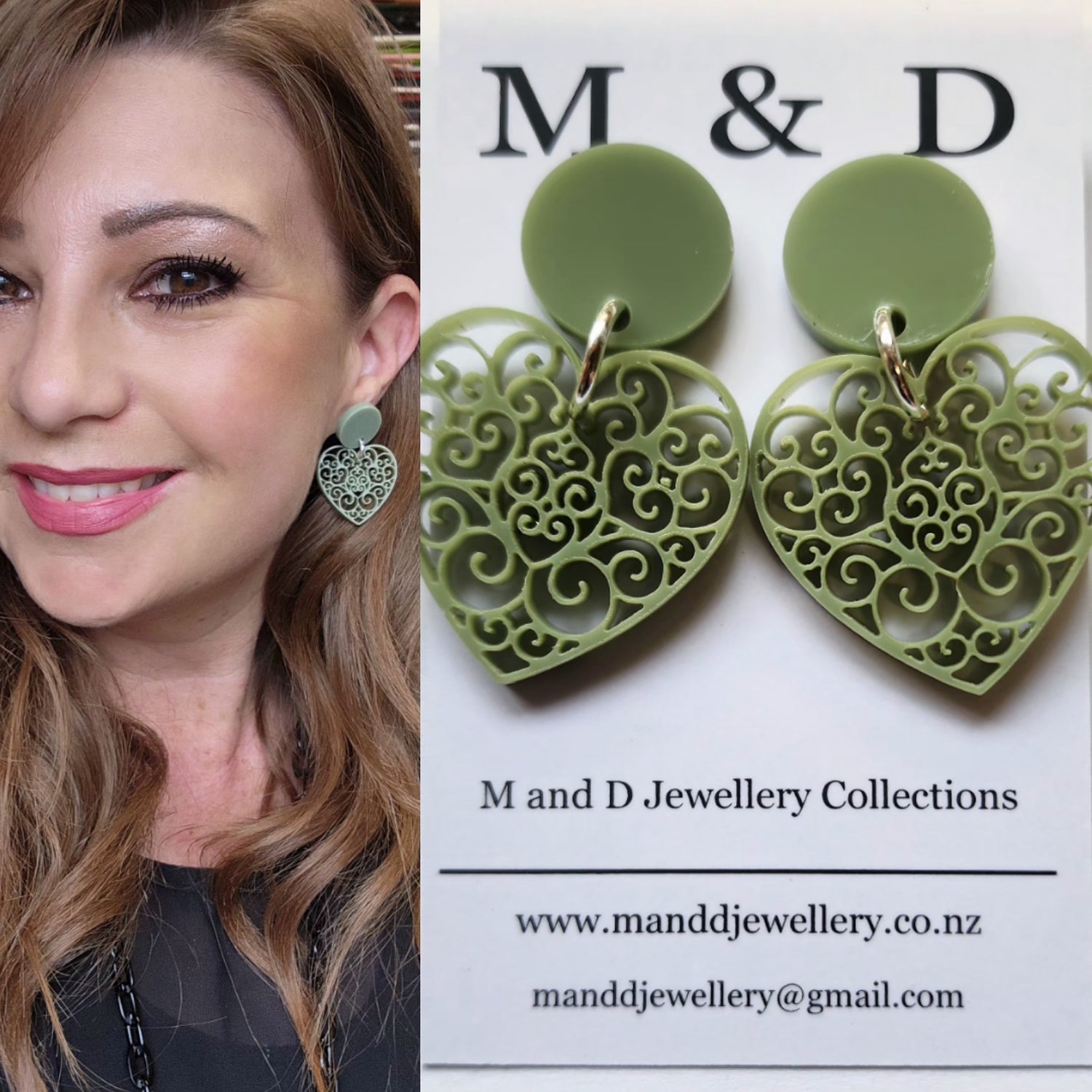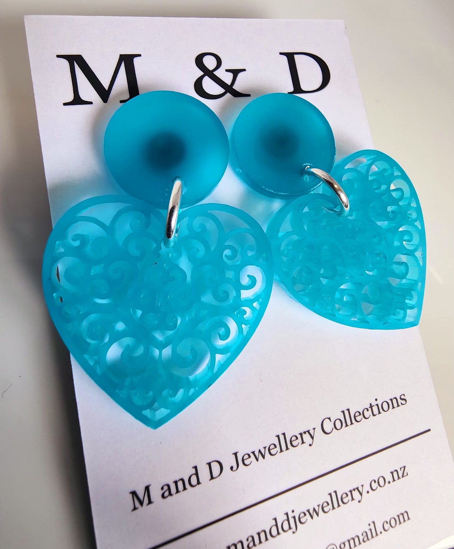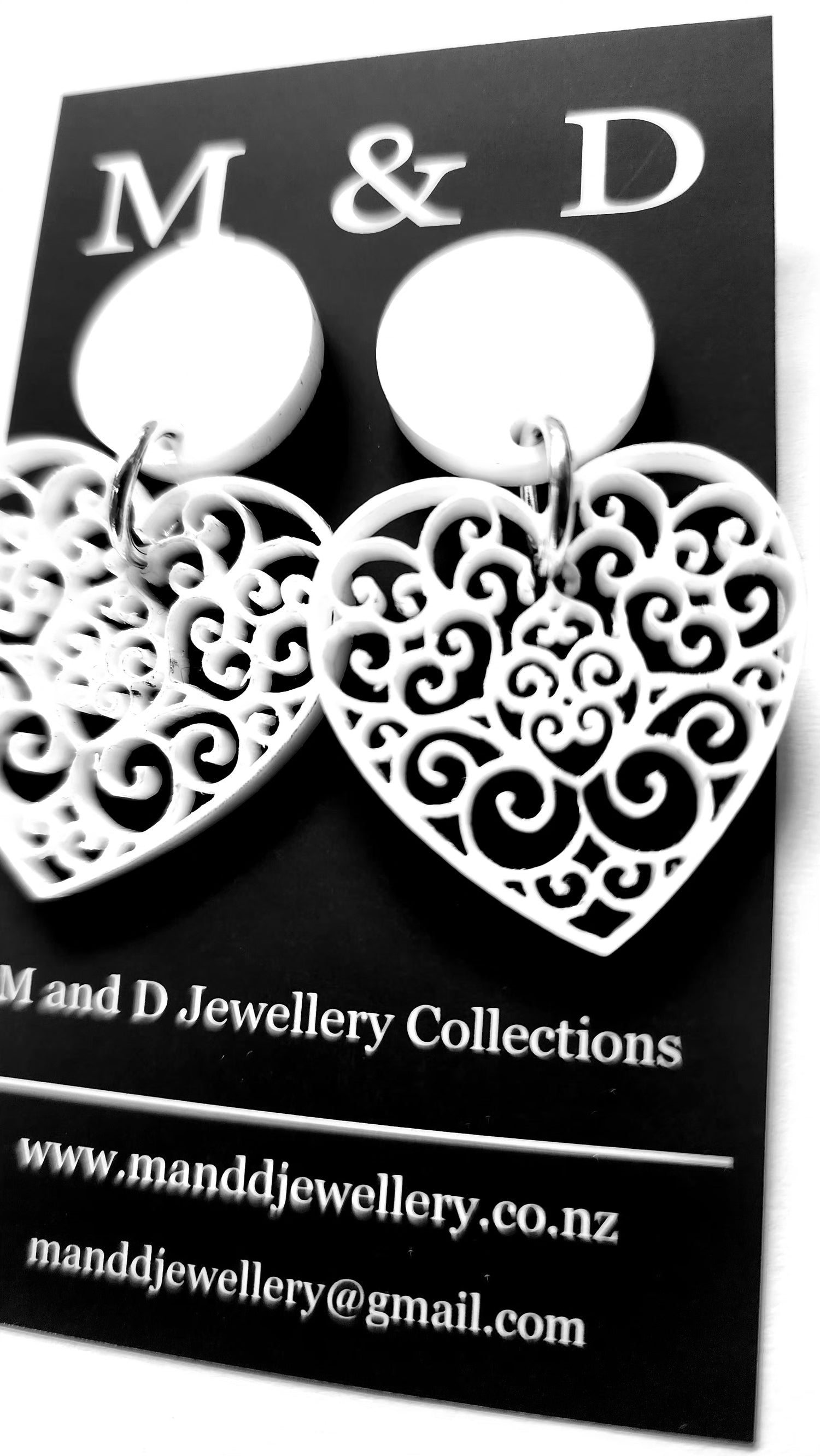 Beautiful Feminine Filigree Heart Earrings with a Stud Top, finished with hypoallergenic stainless steel hardware.