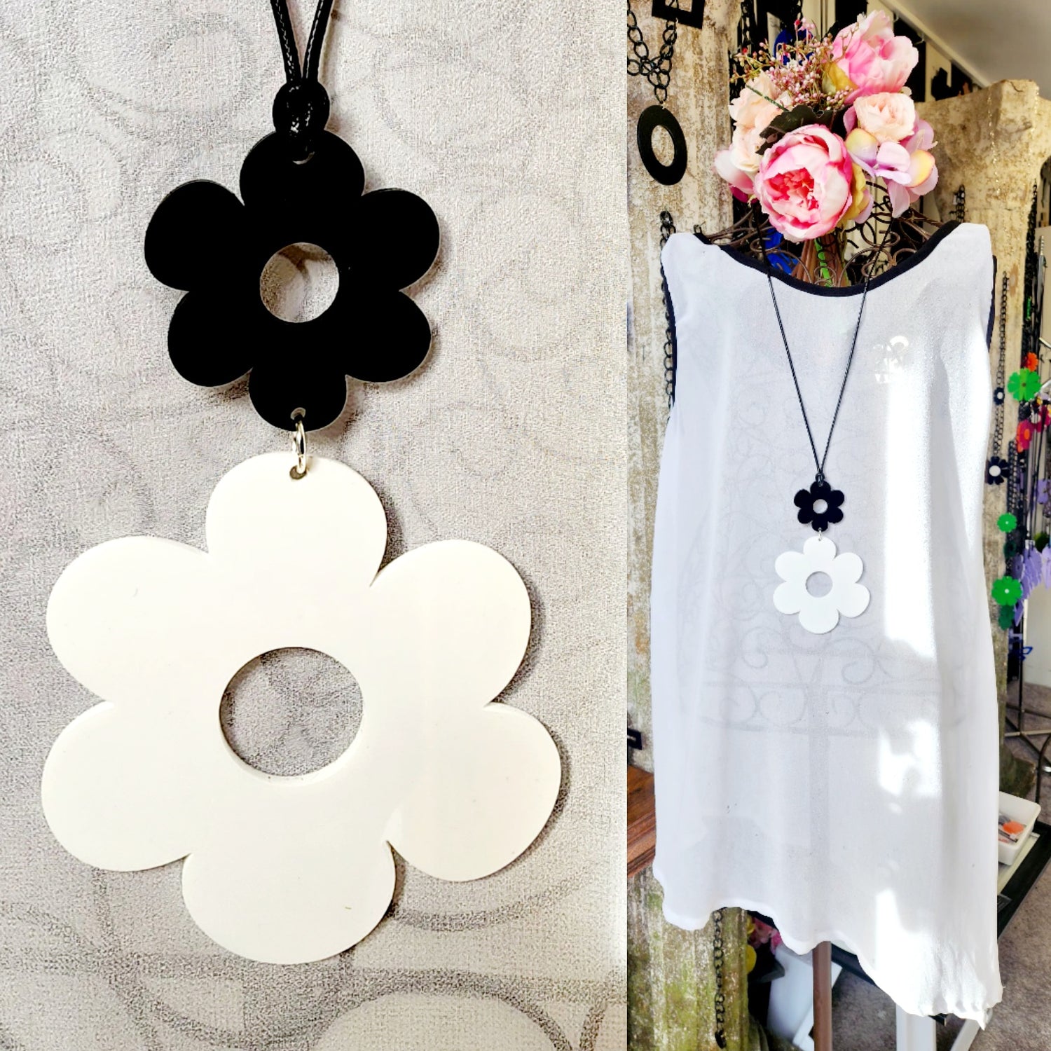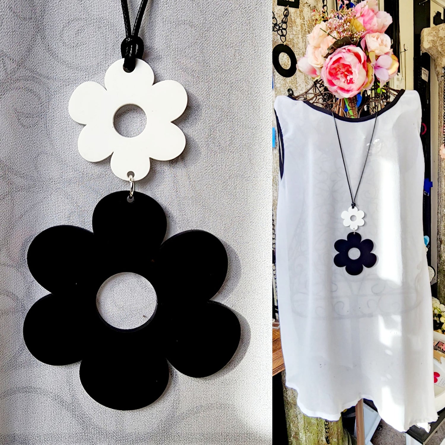 Pretty Flora with a little Flora. Acrylic Statement Necklace Hung on soft pliable waxed cord with an adjustment bead for the perfect length.