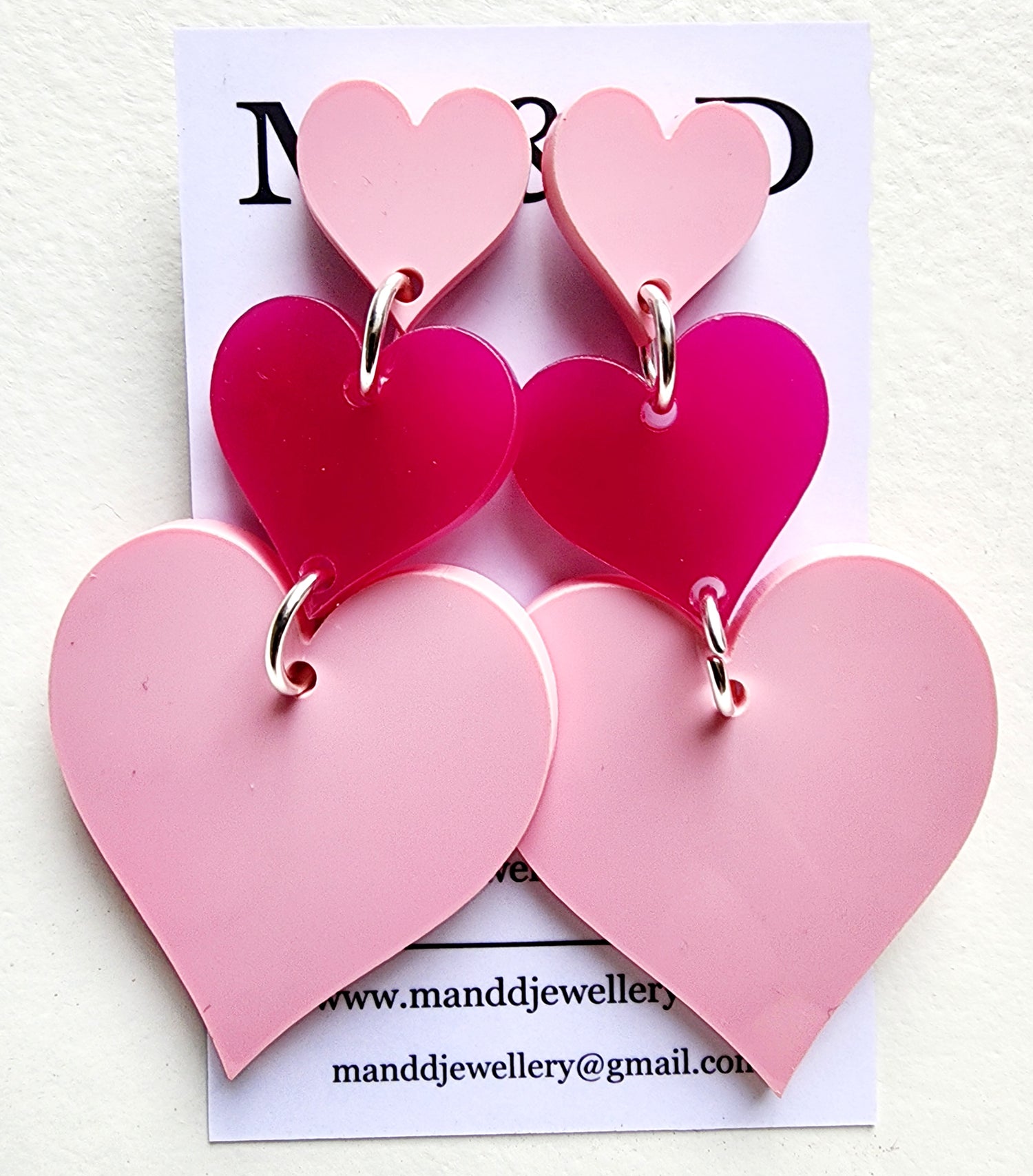 Beautiful Heart Earrings arranged in a trio.