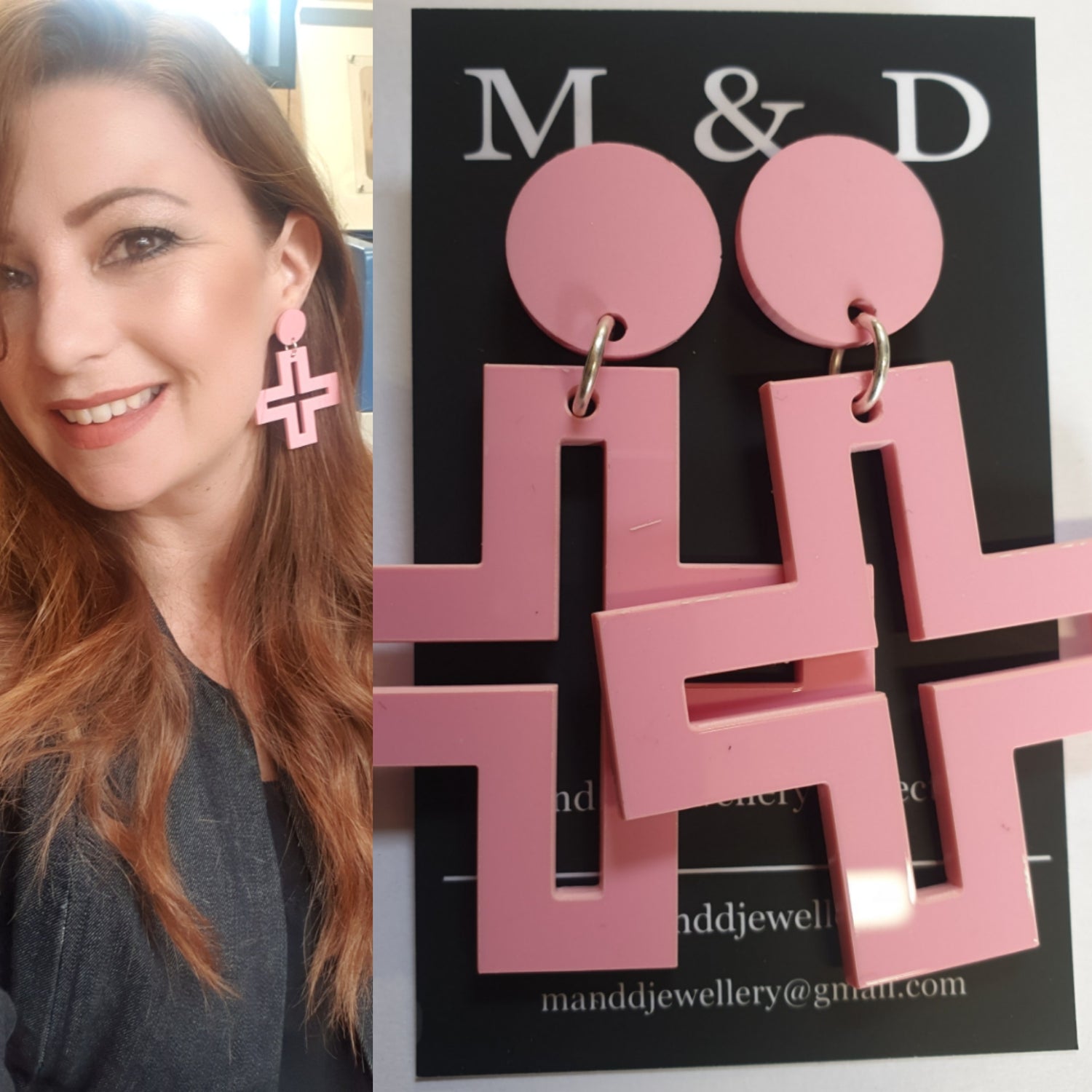 Acrylic Square Cross earrings. 3mm thickness