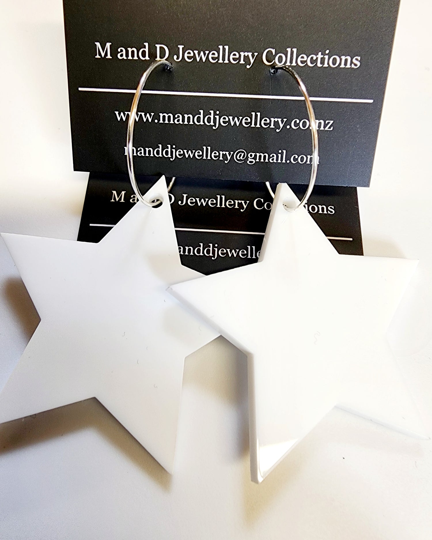Stylish acrylic earrings hung on hypoallergenic stainless steel hoops.