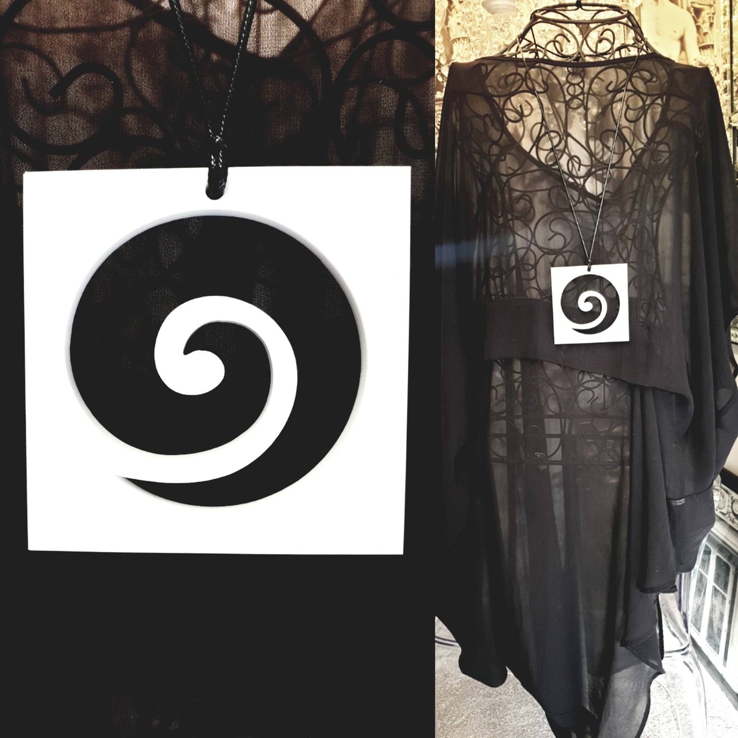 Cut from 6mm Chunky Acrylic. Square with a Koru cut out.
