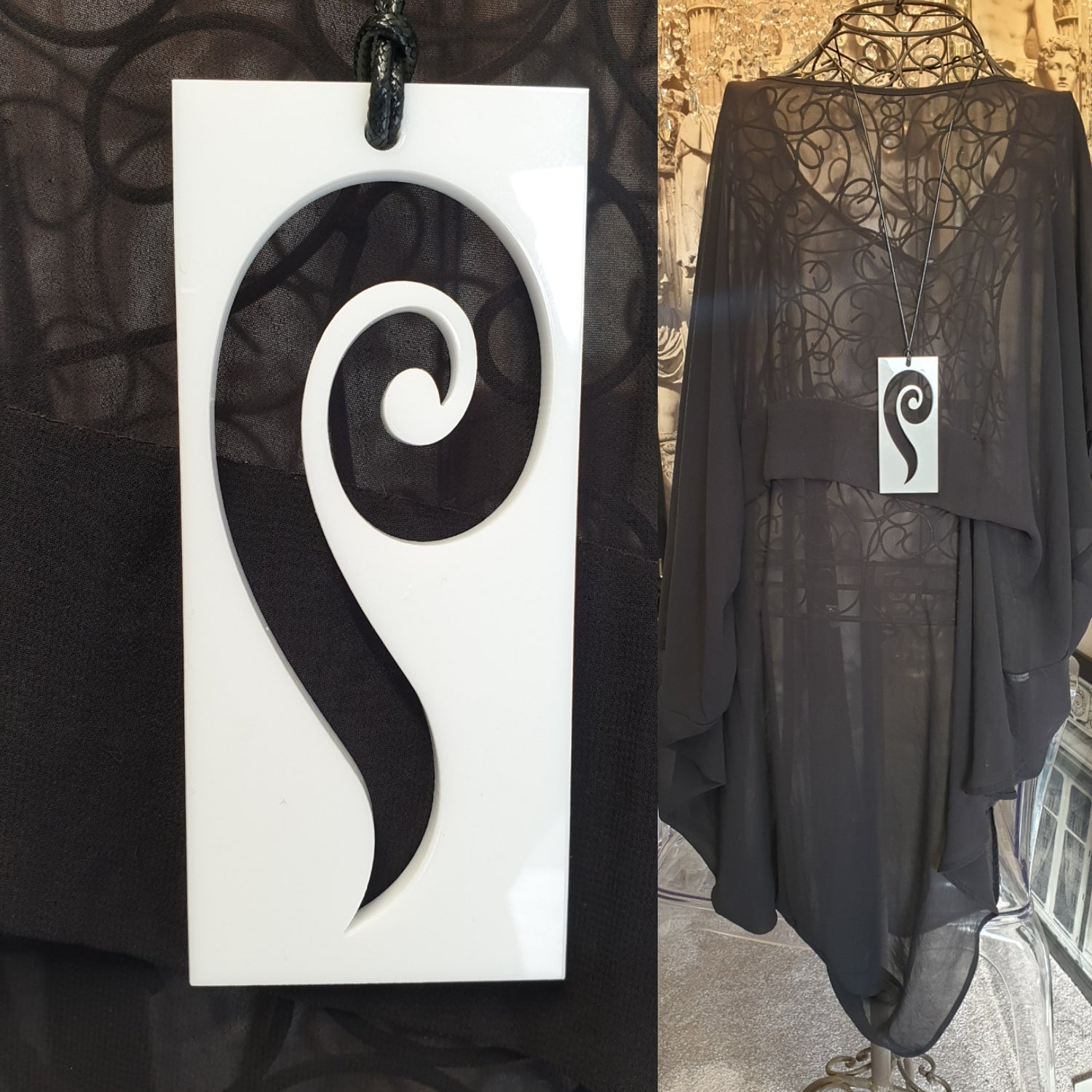 Long Spiral Shadow Statement Necklace, Cut from chunky 6mm acrylic with a stylish long Spiral cut out.
