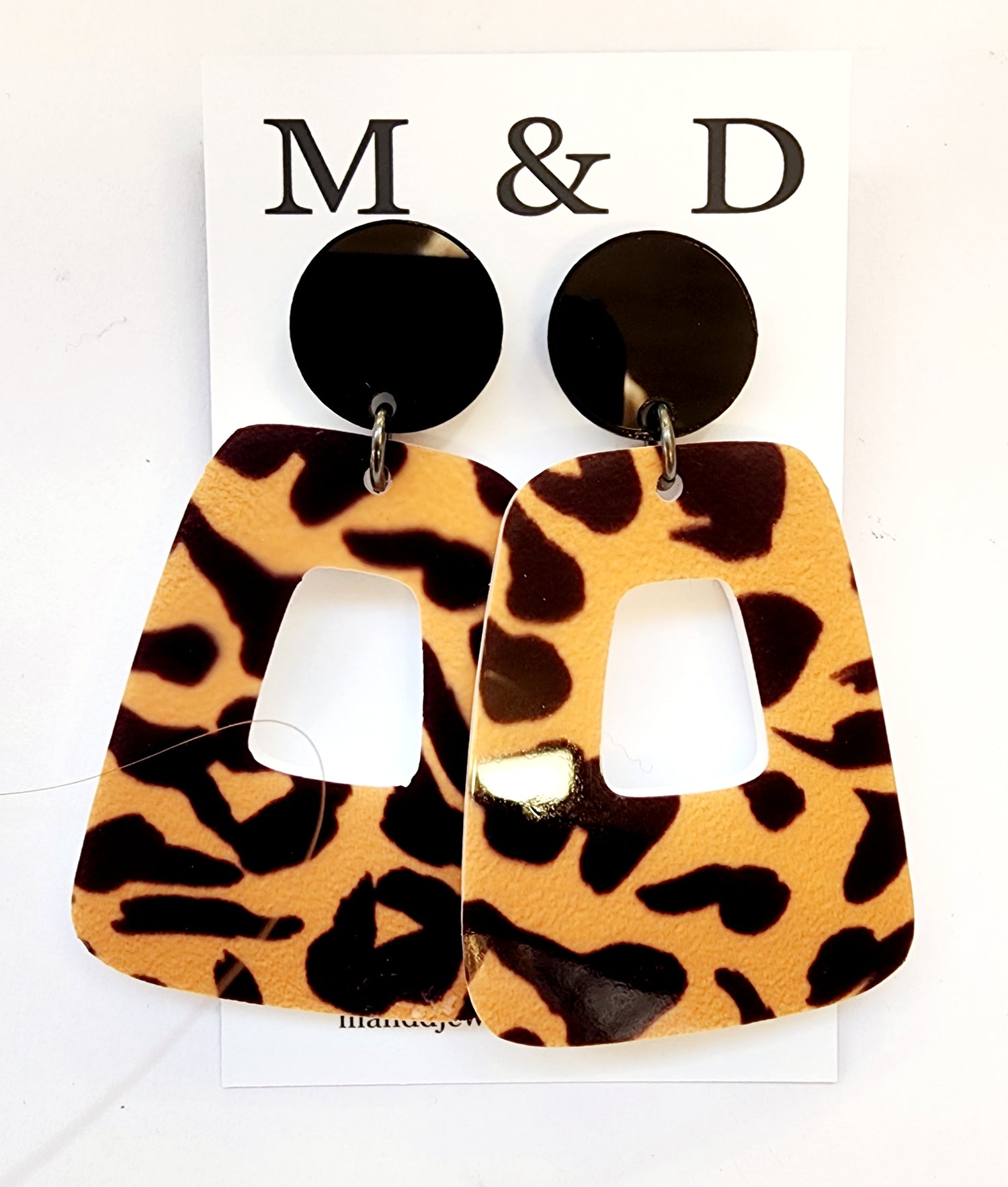 Patterned Block Ginger Leopard stud dangle earrings
