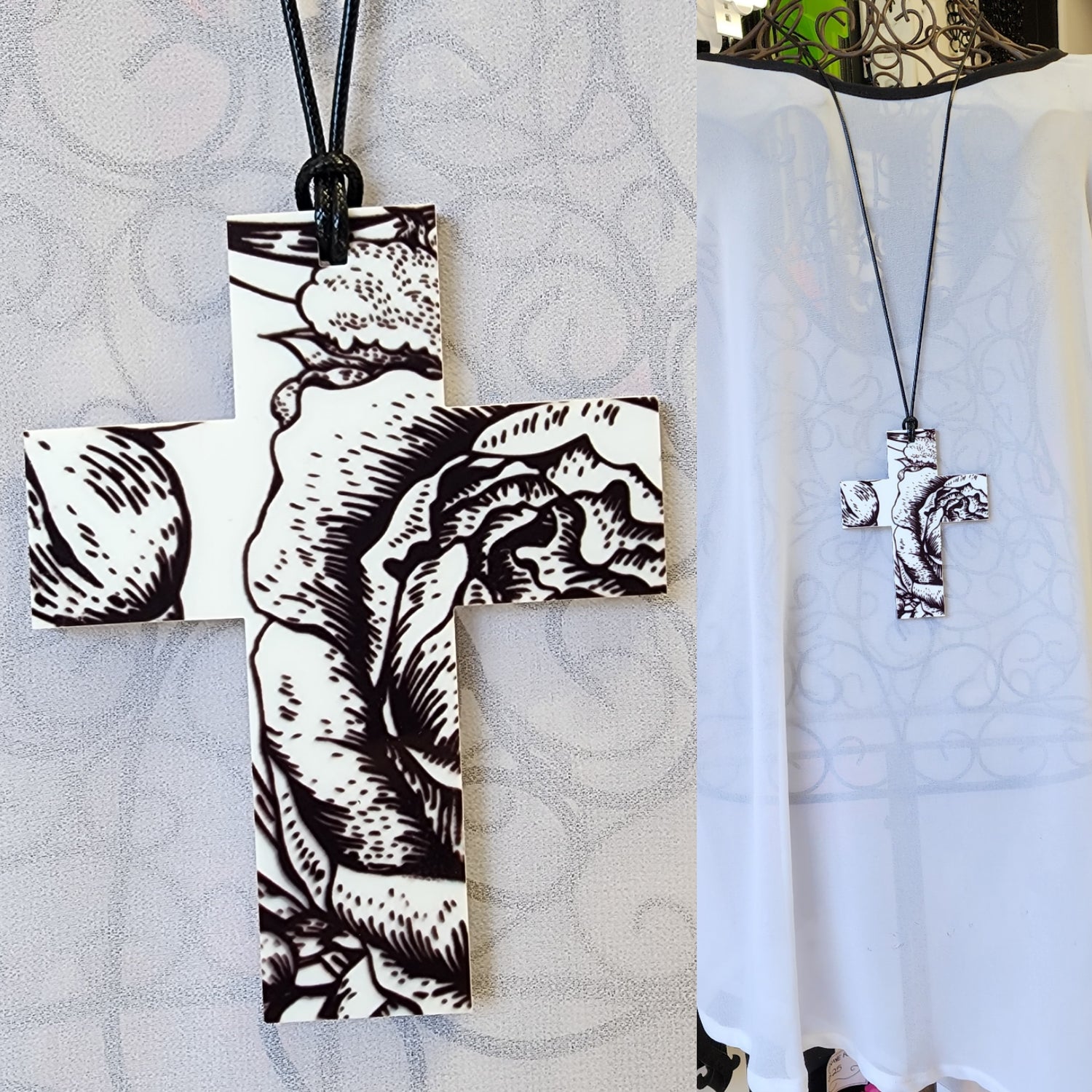 Printed Acrylic Floral Cross Statement Necklace