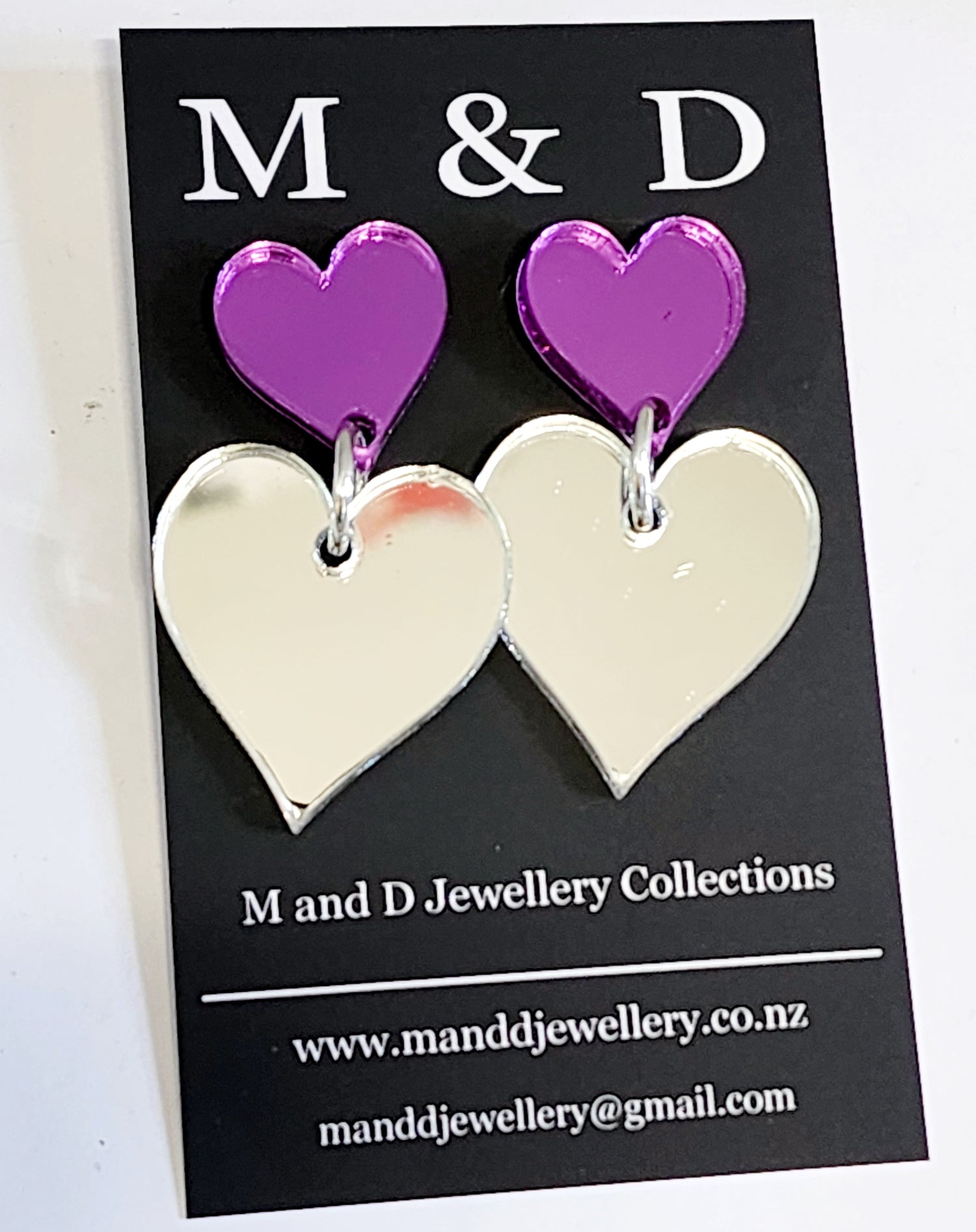 Beautiful double heart earrings, laser cut from our prettiest acrylics. 💖