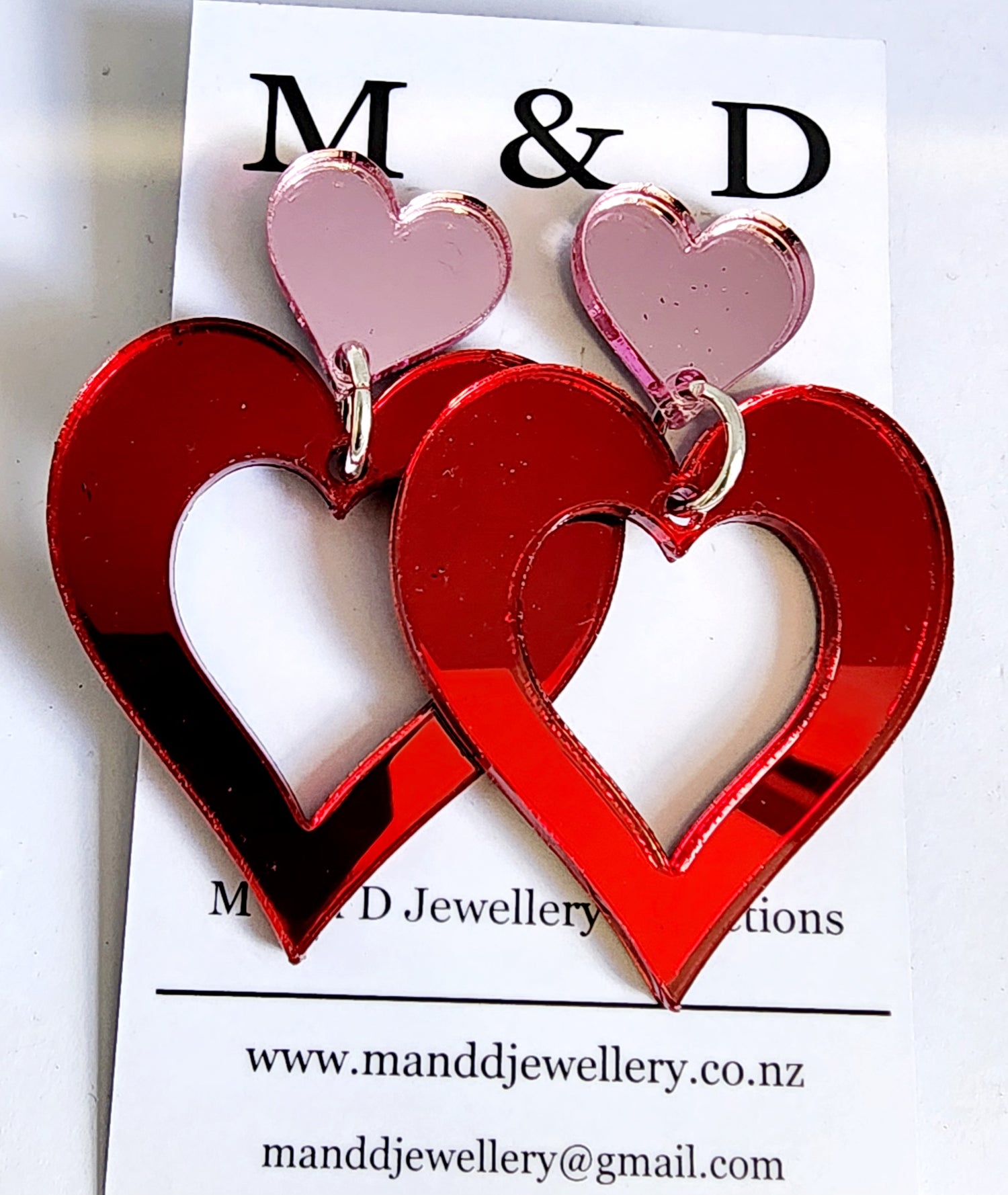 Beautiful double heart earrings, laser cut from our prettiest acrylics. 💖