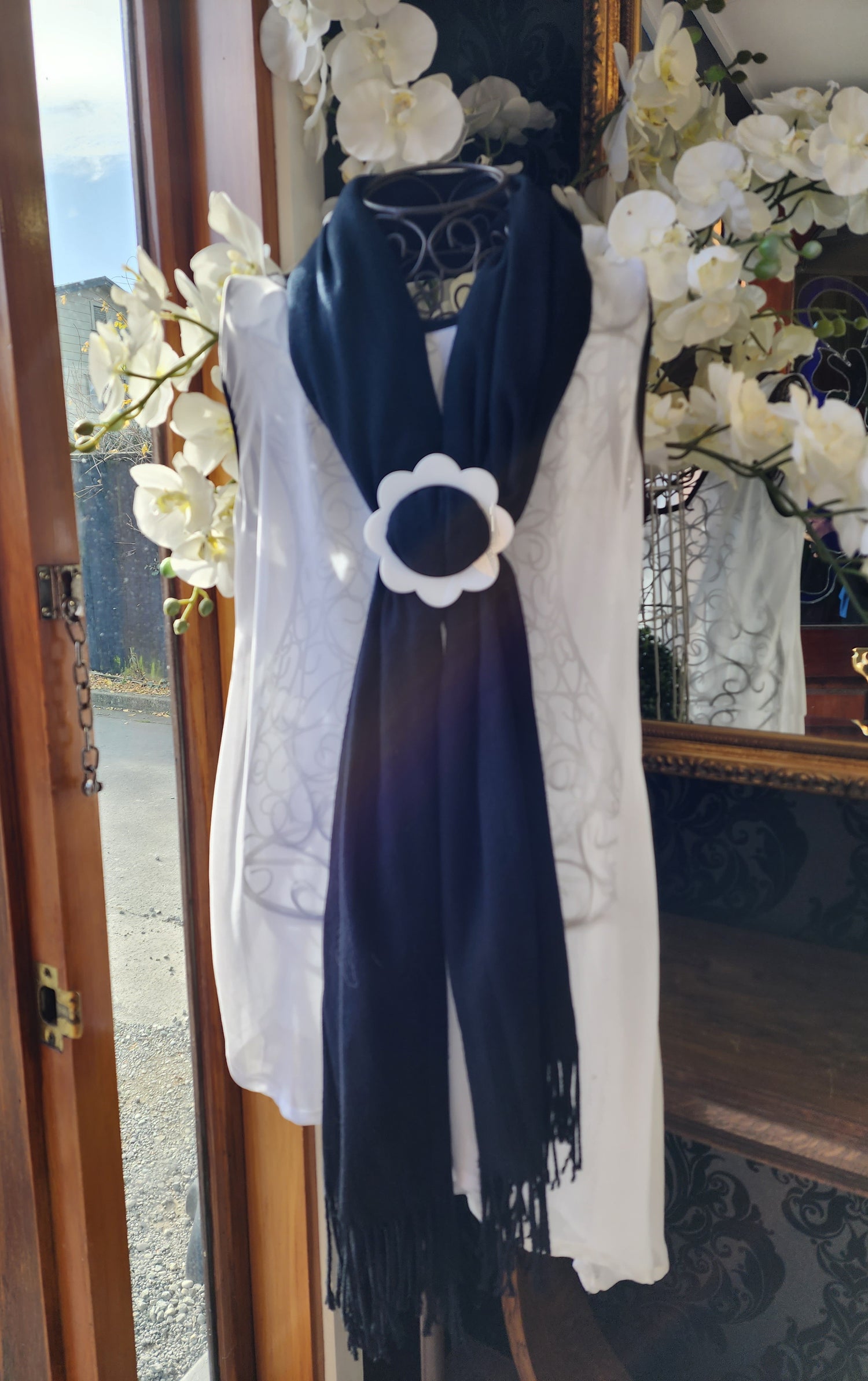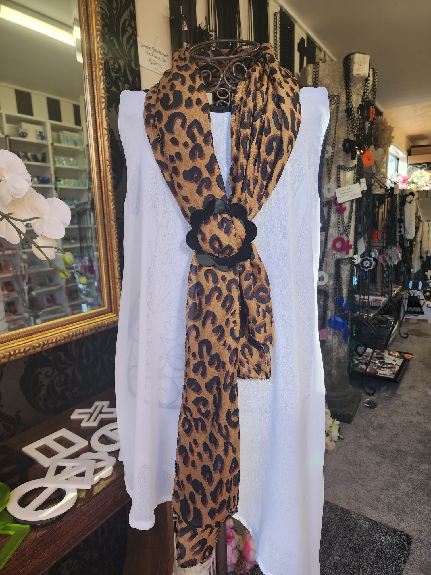 Pretty acrylic flower scarf buckle, simply thread your scarf through the bar to secure and adorn your scarf