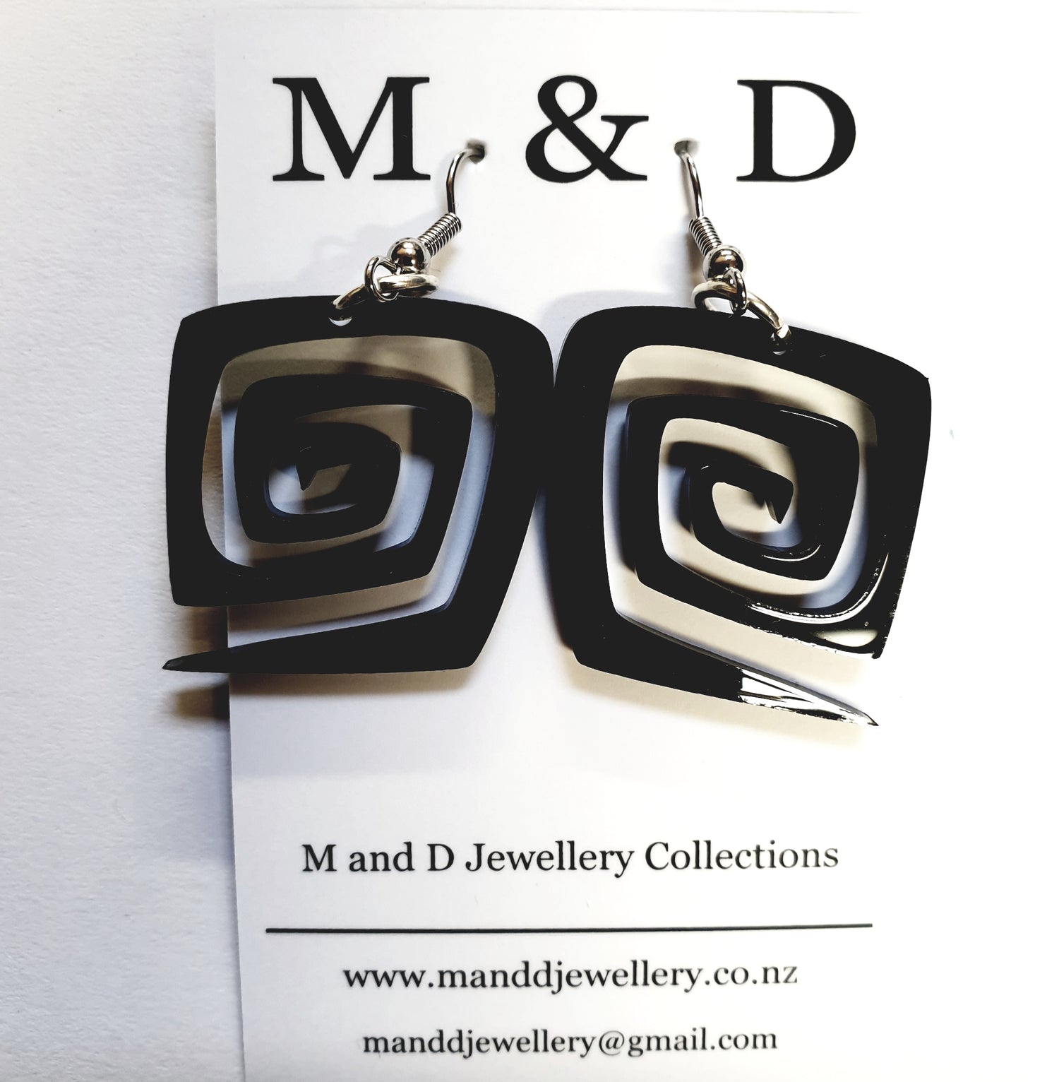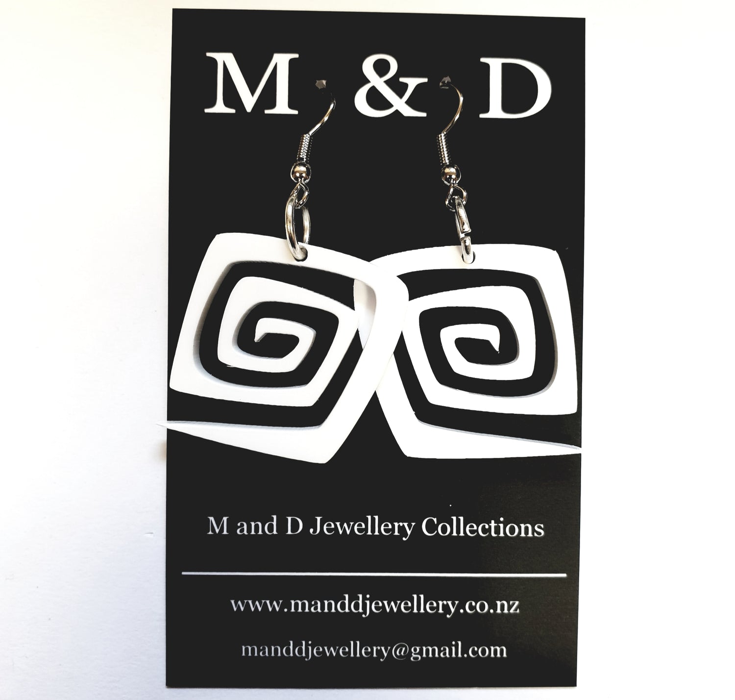 Cut from acrylic and finished with hypoallergenic stainless steel hardware