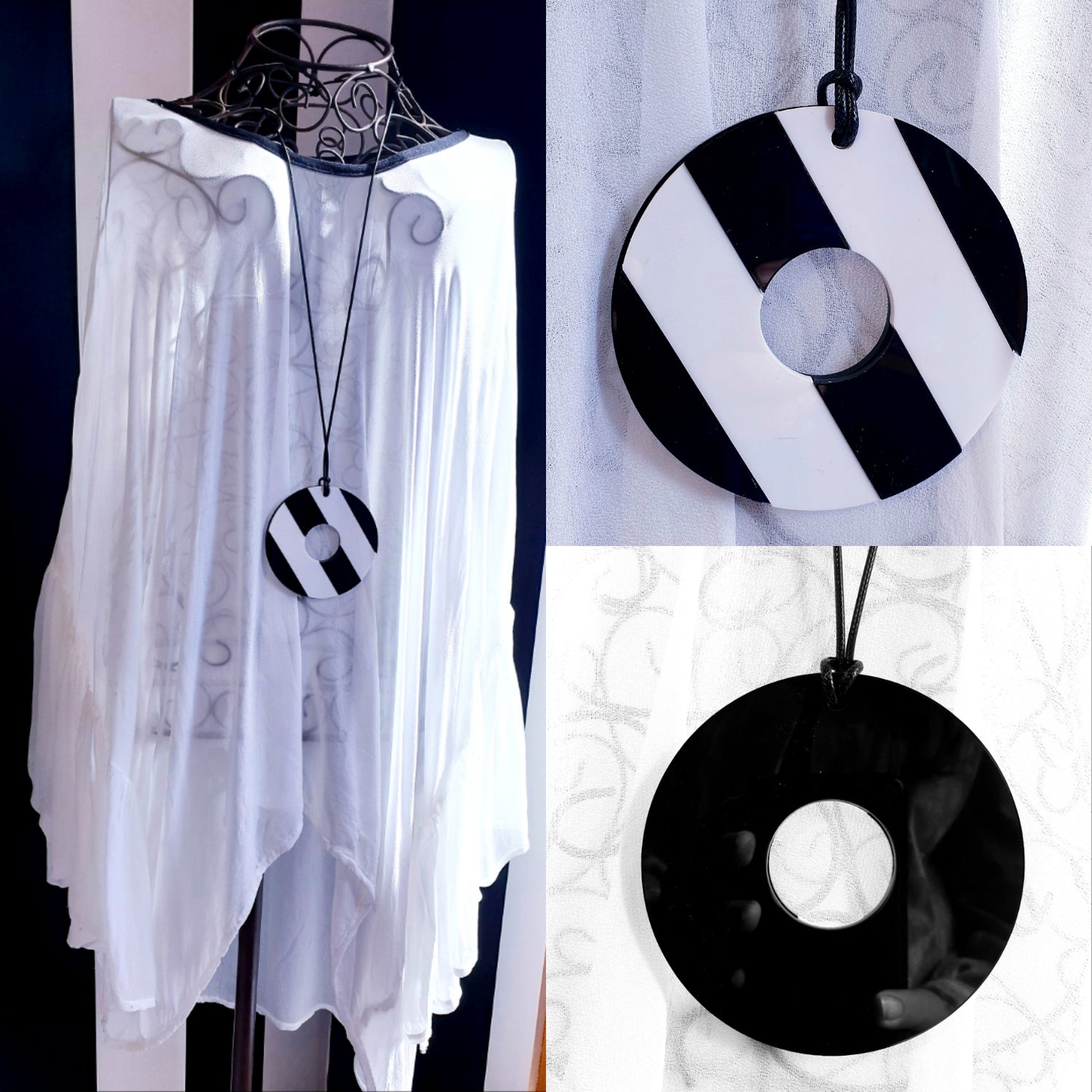 Gorgeus Striking Striped Circle Statement Necklace! And its reversible to be Black or White on the other side. I love options!