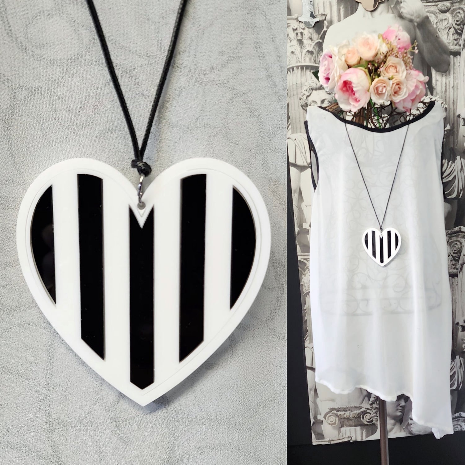 Stripey Heart Statement Necklace 6mm Thick Reversible